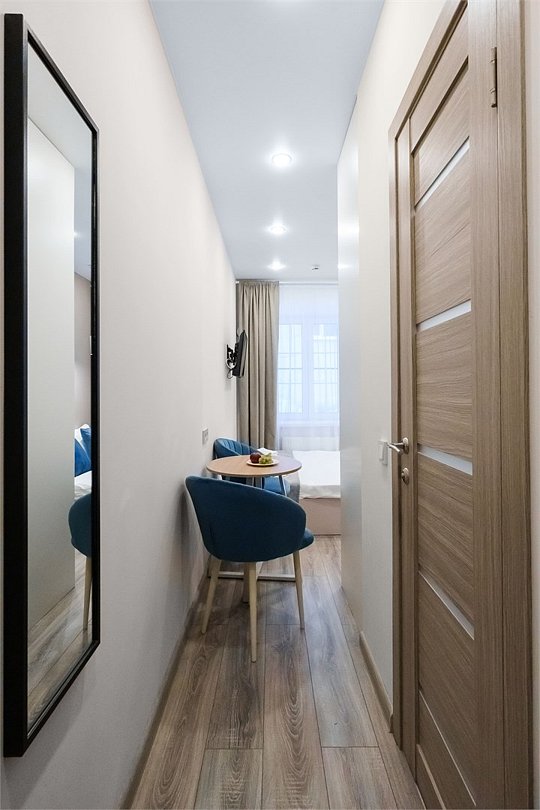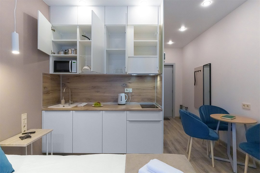 Одноместная студия, полностью оборудованная для комфортного проживания.Услуги и удобства
