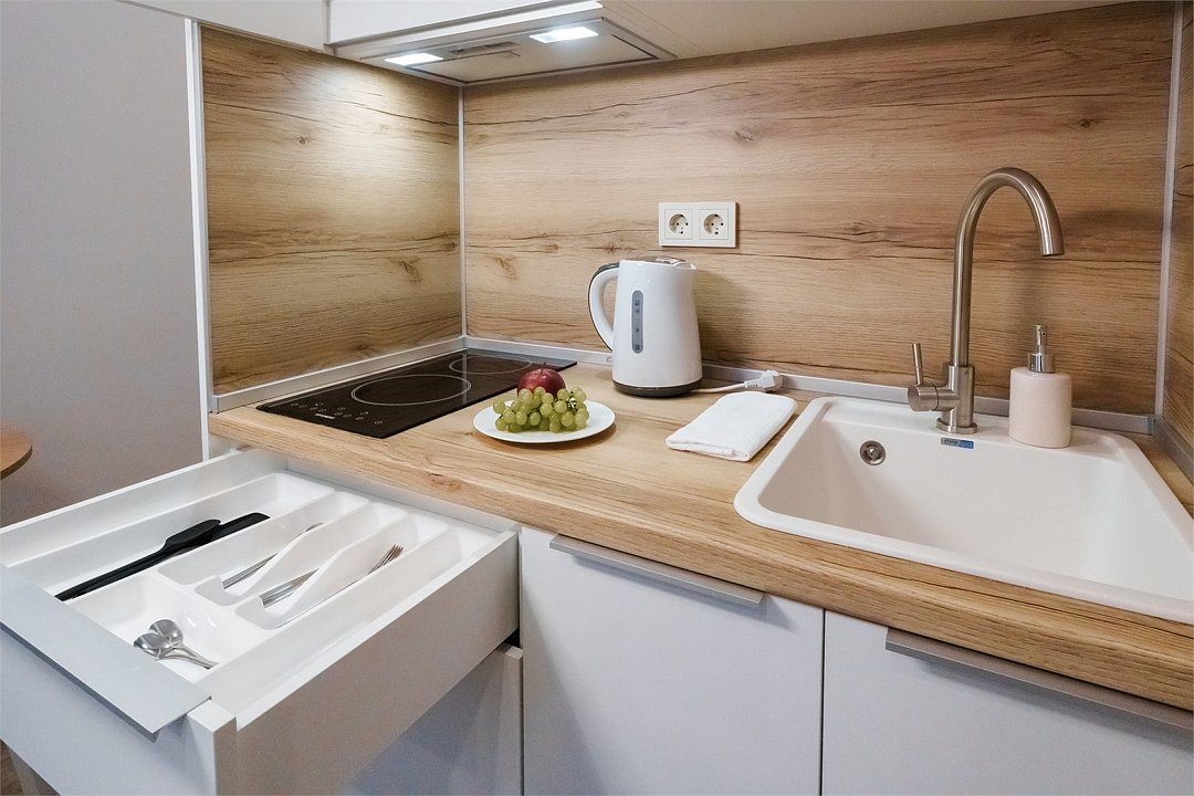 Улучшенная студия для трёхместного размещения с кухонным уголком и многофункциональной столовой зонойУслуги и удобства