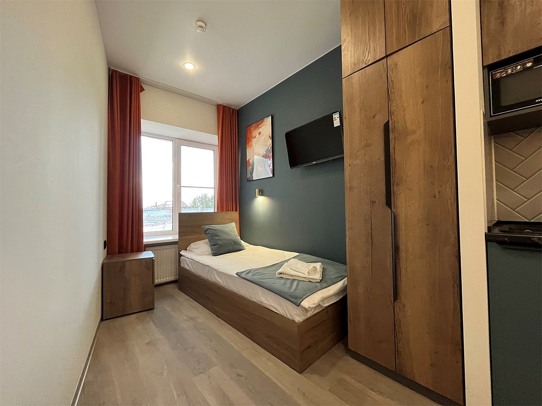 Одноместный номер с кроватью 90Х200 см., с кухонным уголком и многофункциональной столовой зонойУслуги и удобства