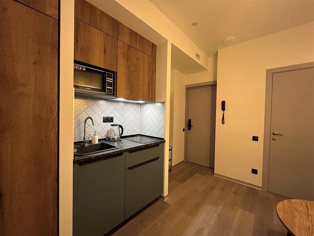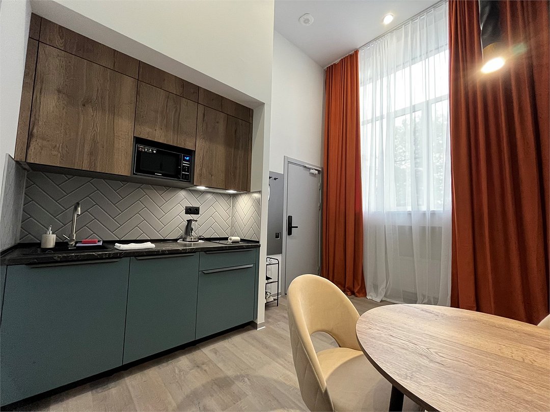 Улучшенная студия для трёхместного размещения с кухонным уголком и многофункциональной столовой зонойУслуги и удобства