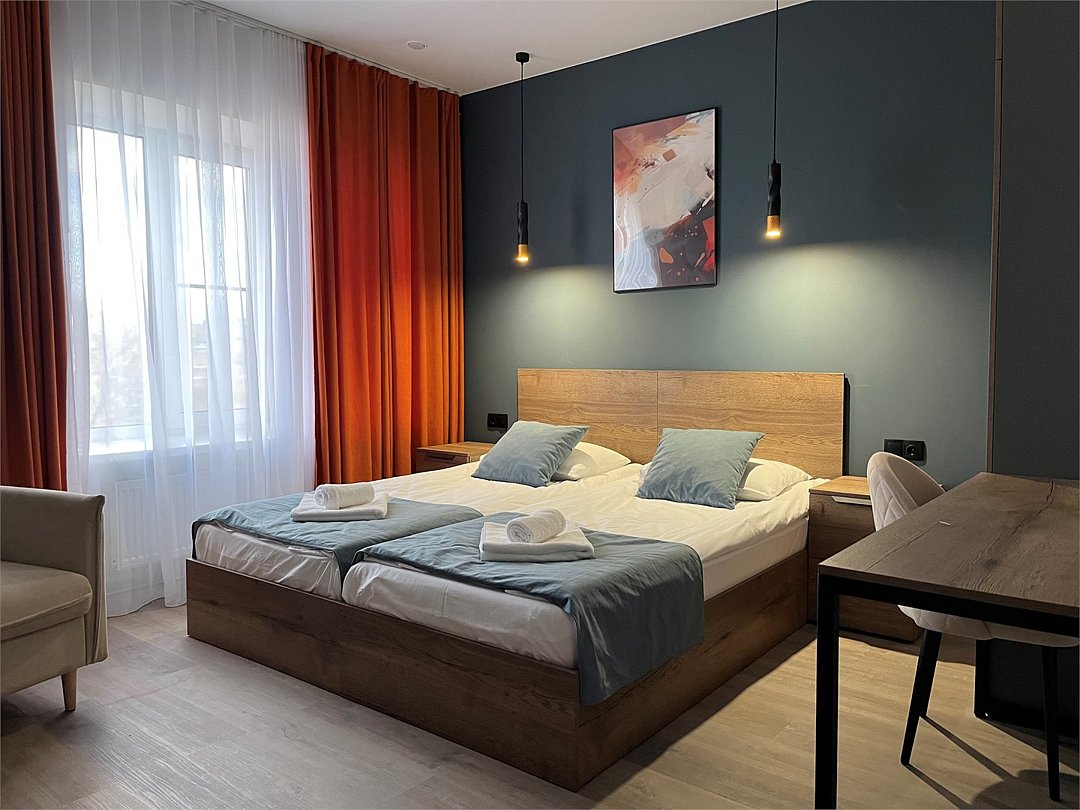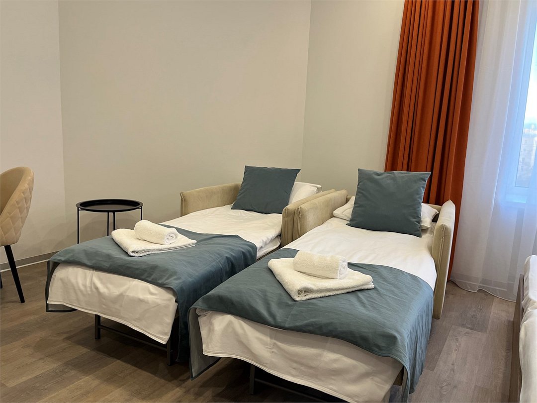телевизор, кабельное телевидение, Wi-Fi, холодильник, светильник, фен, вентилятор, система безопасности, электронные замки, плита для приготовления пищи, микроволновая печь, утюг, обогреватель, ванная комната, душевая кабина, санузел, водонагреватель, халаты, банные полотенца, тапочки, гигиенические средства, две односпальные кровати, гладильная доска, тумбы, стулья, шкаф для одежды, вешалки, обеденный стол, зеркало, кухня, чайный набор, набор посуды, сейф, минеральная вода, стиральная машина, чайник, унитаз, раковина, питьевая вода, отопление, душ, вид на город, вид во двор, кухонная посуда, стаканы, кухонная утварь, столовые приборы, стул, стол, туалетные средства, туалет, телевизор с плоским экраном, мини-холодильник, мини-кухня, номер для некурящих, онлайн-регистрация до заезда, чайная станция, уборка номера, вешалки-плечики, бутилированная вода, мыло, затемняющая штора, онлайн-регистрацияВ номере
