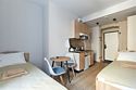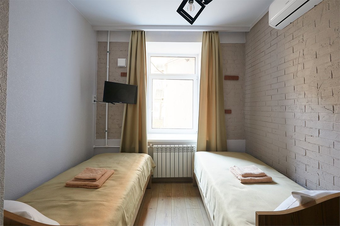 Wi-Fi, кондиционер, фен, плита для приготовления пищи, микроволновая печь, утюг, банные полотенца, две односпальные кровати, гладильная доска, стулья, шкаф для одежды, вешалки, обеденный стол, зеркало, набор посуды, чайник, раковина, отопление, душ, вид во двор, стаканы, кухонная утварь, столовые приборы, туалет, телевизор с плоским экраном, мини-холодильник, мини-кухня, номер для некурящих, онлайн-регистрация до заездаВ студии