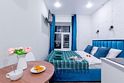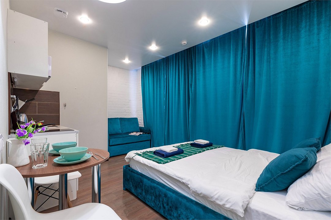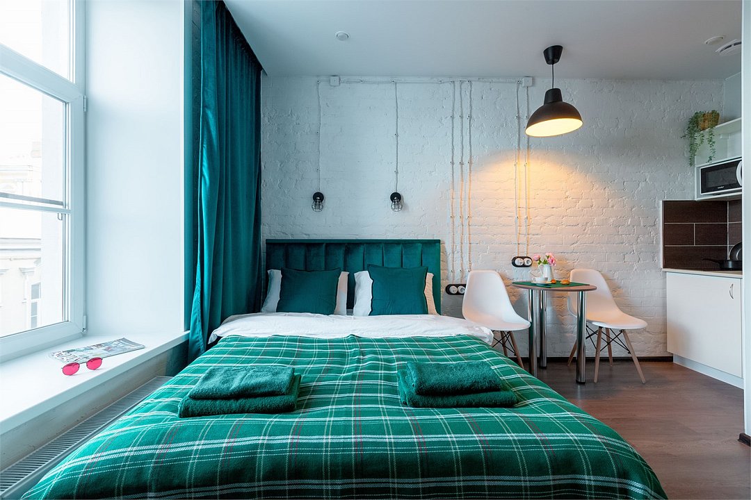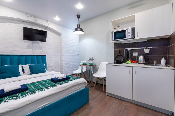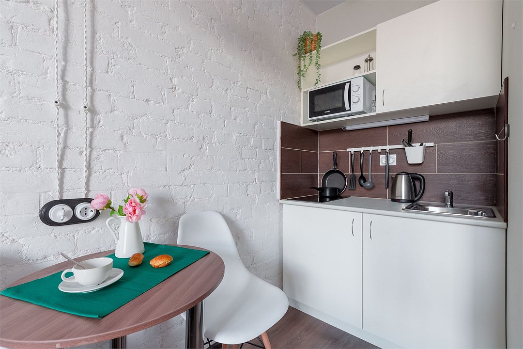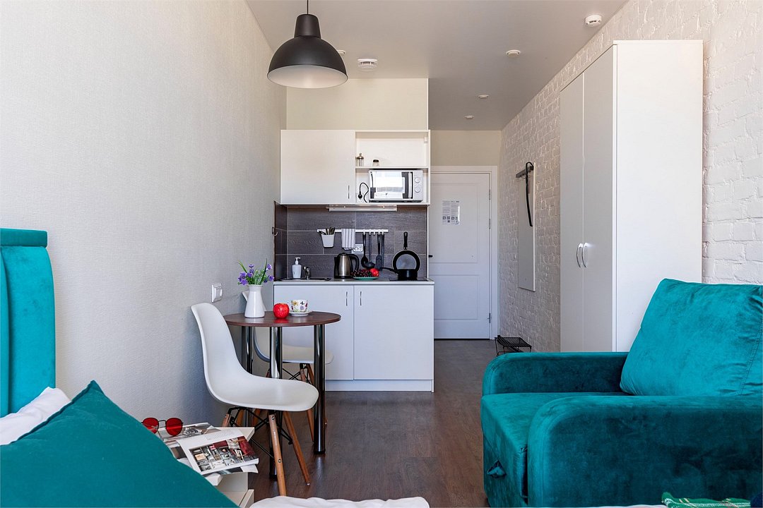Все 38 меблированных апартаментов представляют собой комфортные студии с индивидуальным дизайном. Светлый и уютный интерьер апартаментов располагает к отдыху после деловых встреч и культурных прогулок. К услугам гостей предоставляются беспроводной интернет Wi-Fi, телевизор, собственная ванная комната с душем, фен, а также мини-кухня с микроволновой печью, холодильником и плитой, посудой и столовыми приборами.