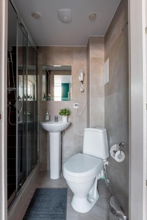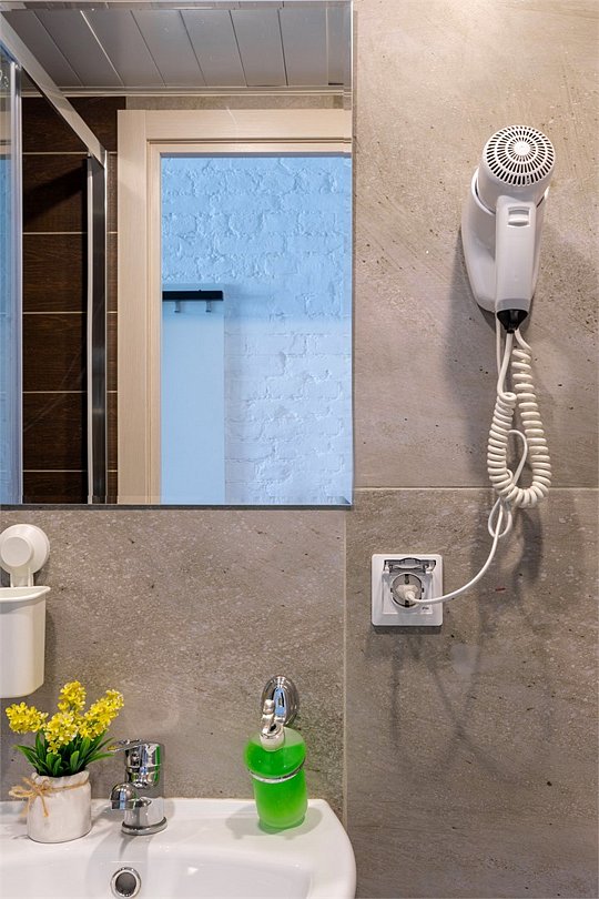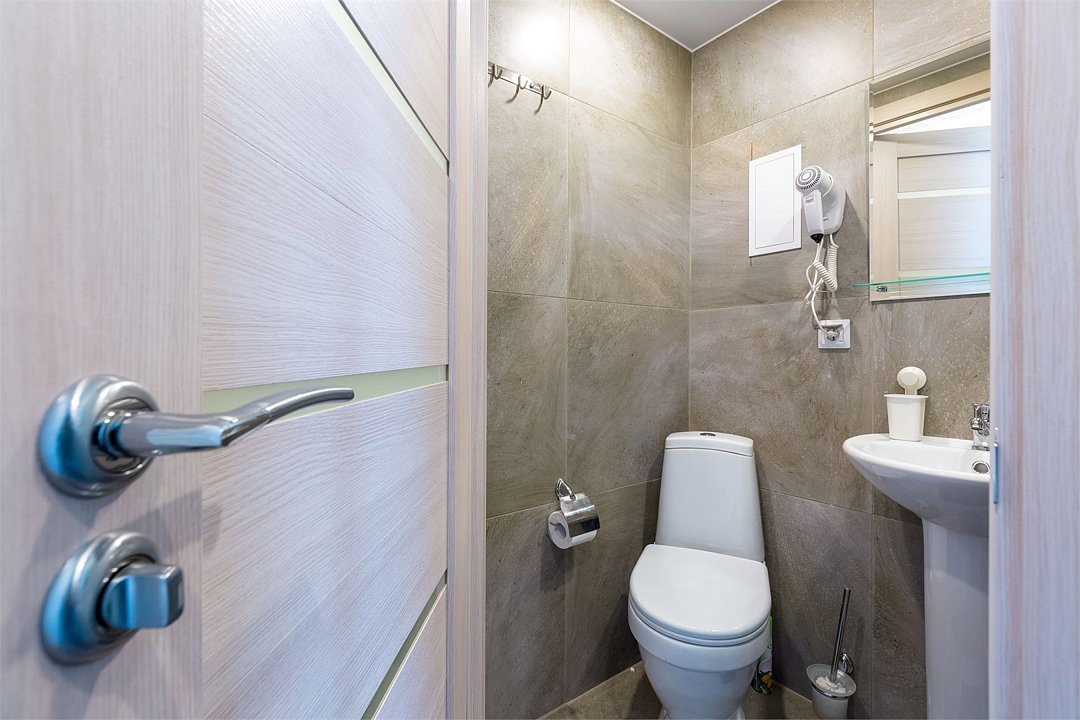 - собственный санузел (туалет, душ, фен, набор полотенец). Вентиляция работала нормально и посторонних запахов или особой влажности не было. Кстати по договору (заключается при заселении) полотенца меняют раз в 3 дня (тогда же проводят уборку номера), но нам сменили, только после напоминания на 4-й день. И да в этом санузле нету полотенцесушителья, странно, что Владельцы не повесели хотя бы электрический.