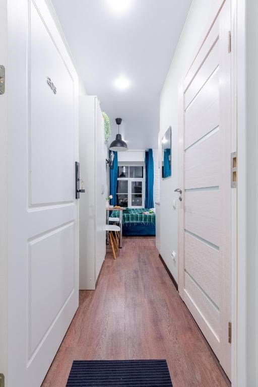 И найти вход при первом посещении в некотором роде проблема, несмотря на то, что Администратор отеля за день до прибытия, в мессенджер присылает инструкцию с фото, как найти эти апартаменты. В итоге оказалось, что бы найти вход в сами апартаменты Port Comfort by the Gostiniy Dvor, надо сначала найти арку с кованной решеткой "Студия танца", перейти через нее (слева от решетки расположен домофон) и подняться по лестнице.