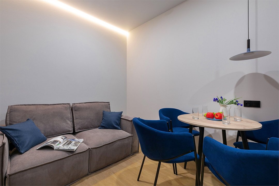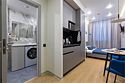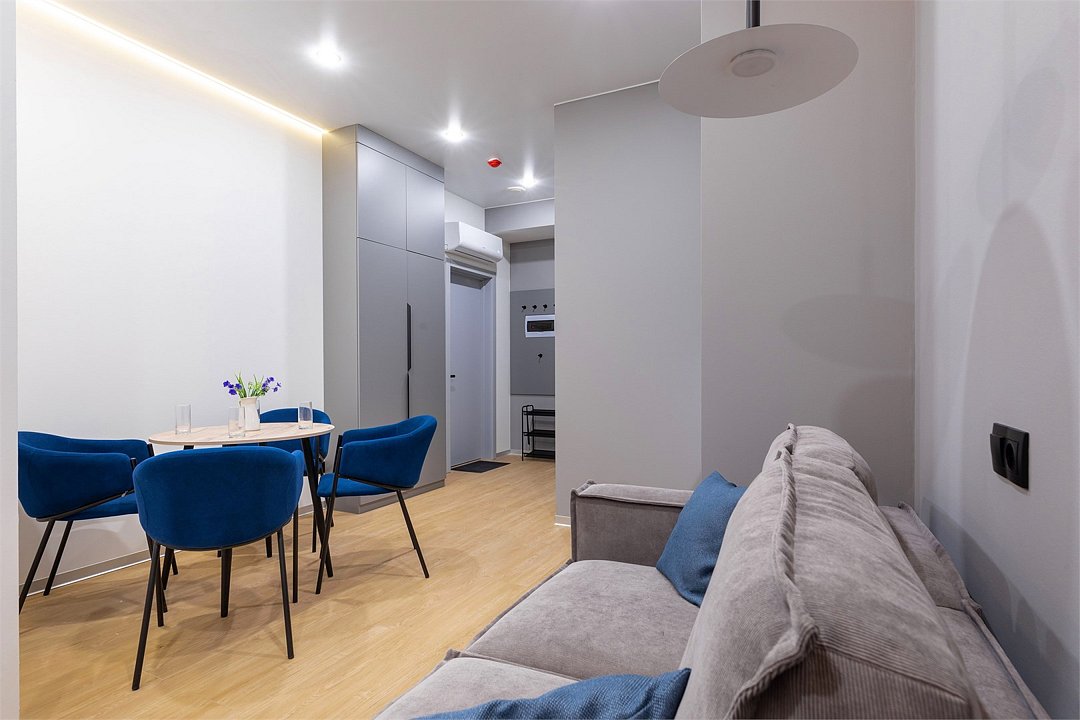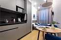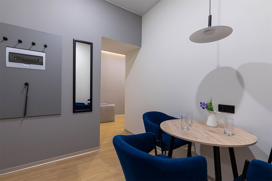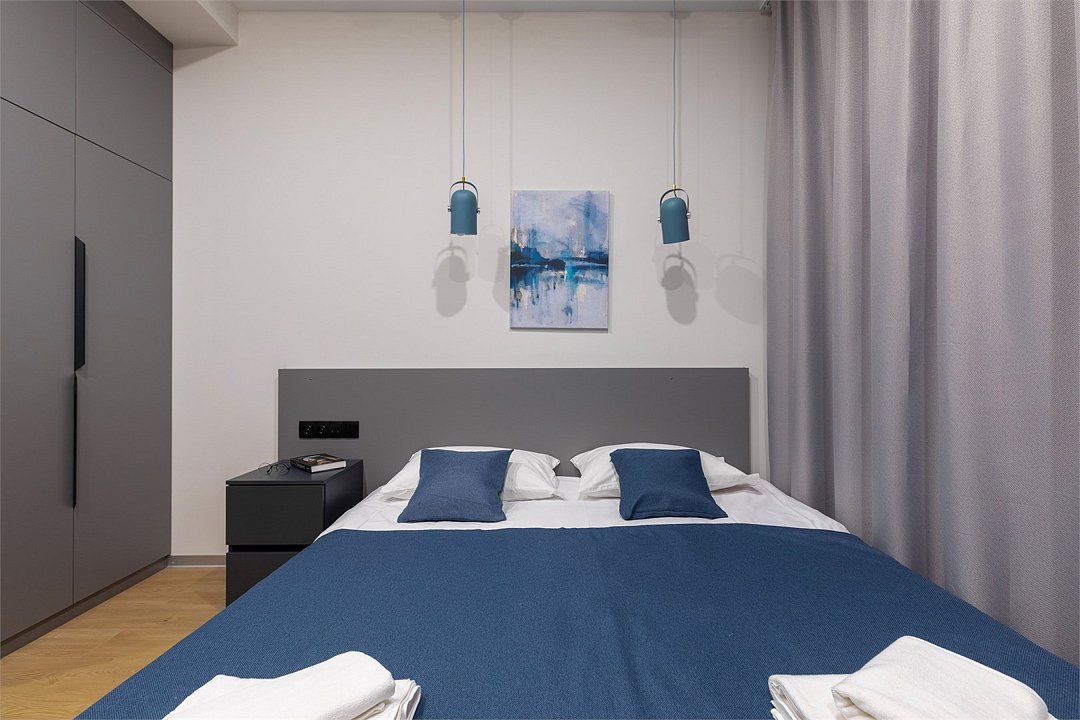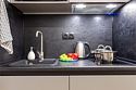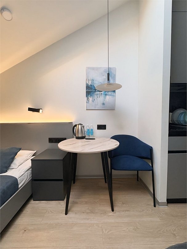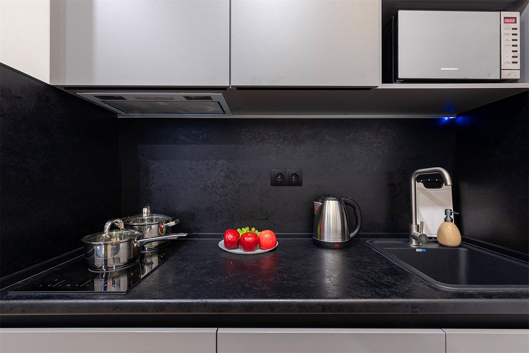 Апартаменты разного уровня вместимости и комфорта имеют современное оснащение, располагаются на 1 этаже 5-этажного здания. В комнатах установлена удобная кровать, шкаф для хранения одежды, телевизор, кондиционер, работает Wi-Fi. Санузел с ванной или душем, есть фен и туалетно-косметические принадлежности. Кухонная зона оснащена электрической плитой, холодильником, микроволновой печью, электрическим чайником, набором посуды и столовых приборов.