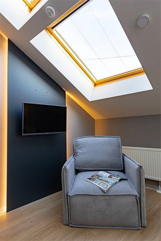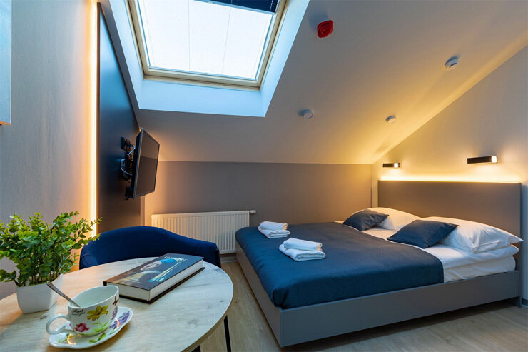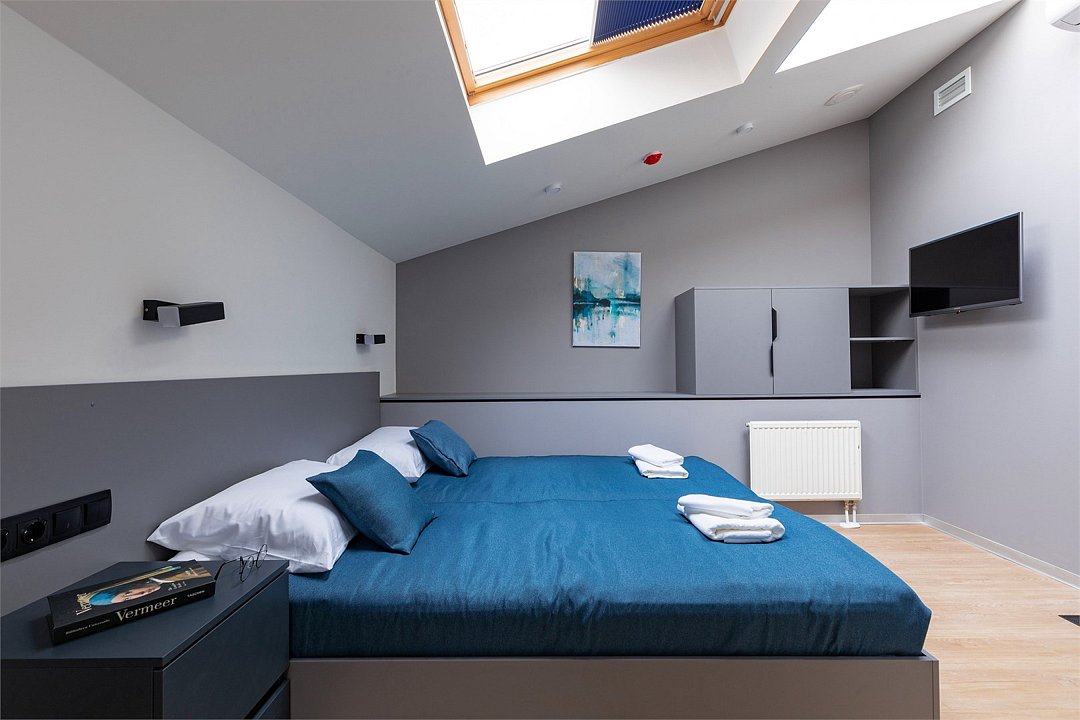 двуспальная кровать, с/у, душ, ТВ, мини-кухня, кондиционер, мансардное окно