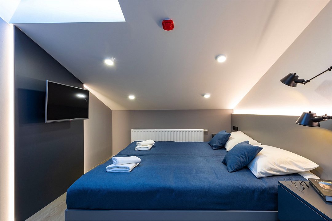 Wi-Fi, кондиционер, фен, электронные замки, плита для приготовления пищи, микроволновая печь, утюг, обогреватель, санузел, водонагреватель, халаты, банные полотенца, тапочки, гигиенические средства, косметические средства, две односпальные кровати, гладильная доска, стулья, шкаф для одежды, вешалки, набор посуды, информационная карта, меню, сейф, стиральная машина, чайник, унитаз, раковина, косметическое зеркало, питьевая вода, обеденная зона, отопление, душ, кухонная посуда, стаканы, кухонная утварь, столовые приборы, стол, туалетные средства, туалет, сплит-система, сушилка для белья, внутренний телефон, телевизор с плоским экраном, мини-холодильник, мини-кухня, кухонный уголок, мансардные окна, номер для некурящих, электронный консьерж 24/7, можно с питомцамиВ аппартаментах