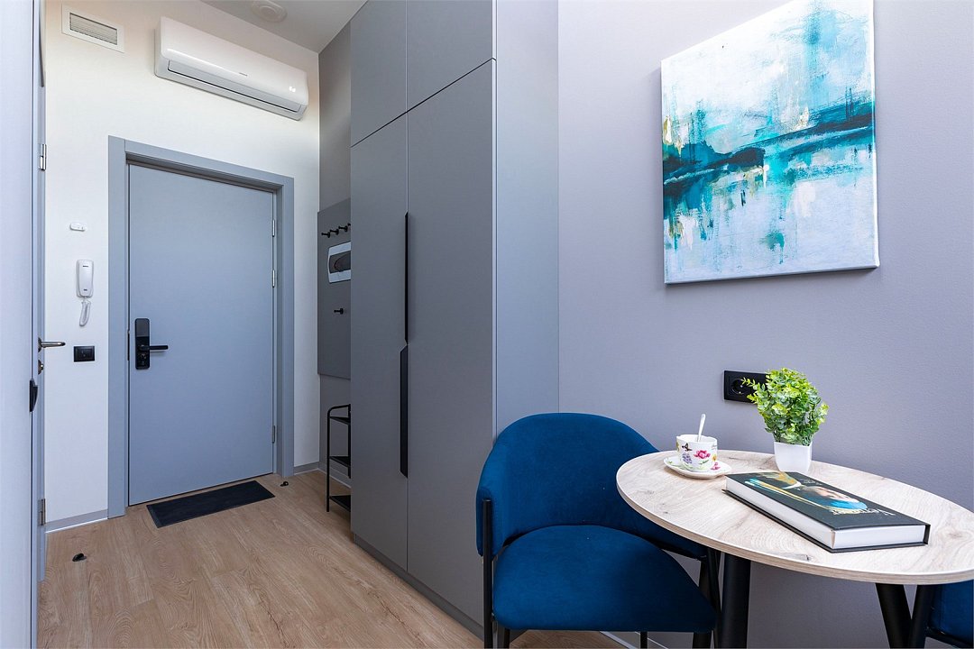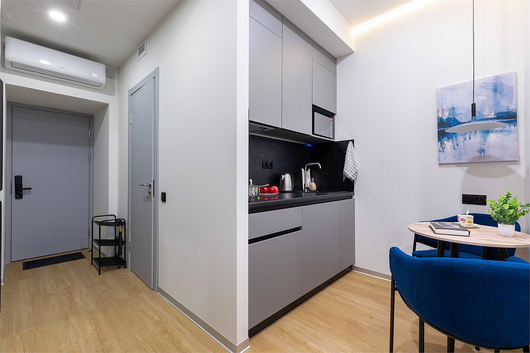 Wi-Fi, кондиционер, фен, электронные замки, плита для приготовления пищи, микроволновая печь, утюг, обогреватель, ванная комната, водонагреватель, халаты, банные полотенца, тапочки, гигиенические средства, косметические средства, двуспальная кровать, гладильная доска, стулья, шкаф для одежды, вешалки, зеркало, набор посуды, информационная карта, меню, сейф, стиральная машина, чайник, унитаз, раковина, питьевая вода, обеденная зона, отопление, душ, вид на город, вид во двор, ламинат, кухонная посуда, стаканы, кухонная утварь, столовые приборы, стул, стол, туалетные средства, туалет, сплит-система, сушилка для белья, внутренний телефон, телевизор с плоским экраном, мини-холодильник, мини-кухня, кухонный уголок, номер для некурящих, электронный консьерж 24/7, можно с питомцамиВ аппартаментах