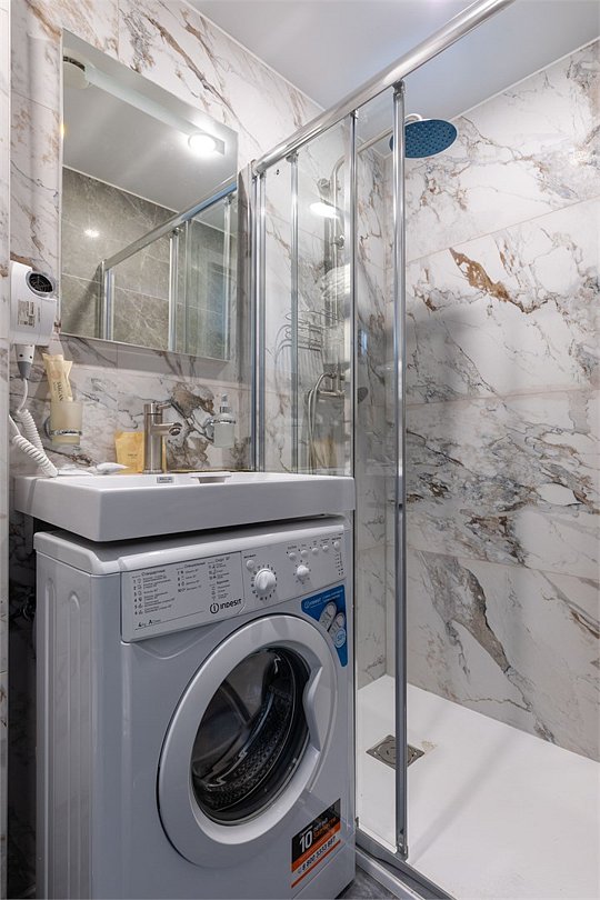 телевизор, Wi-Fi, холодильник, кондиционер, фен, плита для приготовления пищи, микроволновая печь, душевая кабина, водонагреватель, халаты, банные полотенца, тапочки, гигиенические средства, косметические средства, односпальная кровать, гладильная доска, тумбы, шкаф для одежды, вешалки, обеденный стол, зеркало, кухня, набор посуды, обслуживание номеров, сейф, стиральная машина, чайник, раковина, отопление, душ, кухонная посуда, стаканы, столовые приборы, стиральная машина и сушилка, стул, стол, туалетные средства, туалет, сушилка для белья, мини-холодильник, мини-кухня, мансардные окна, номер для некурящих, онлайн-регистрация до заезда, бутилированная вода, шапочка для душа, мыло, затемняющая штора, еда на вынос (за дополнительную плату), онлайн-регистрацияВ номере