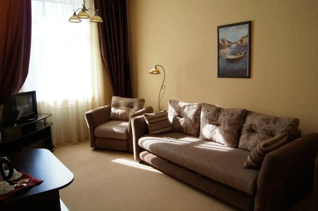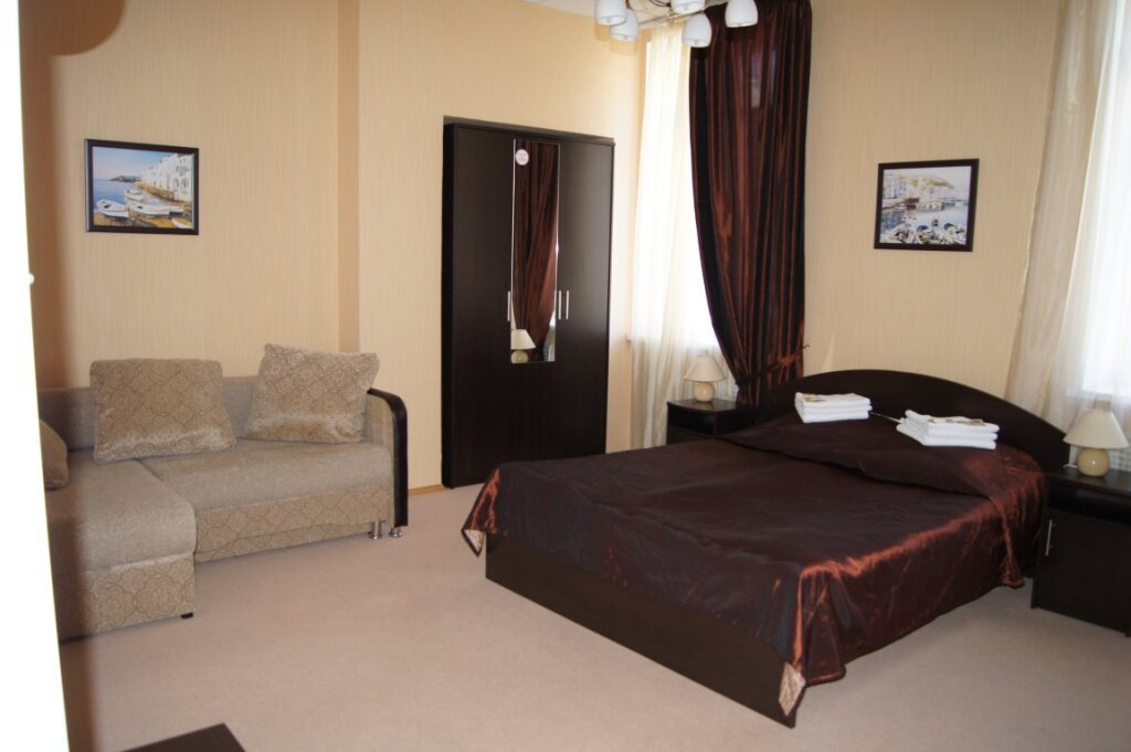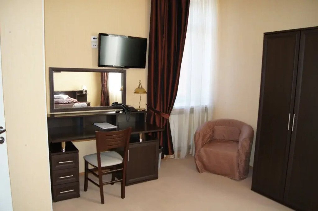 В номере вы найдёте телевизор. Оснащение зависит от выбранной категории номера.