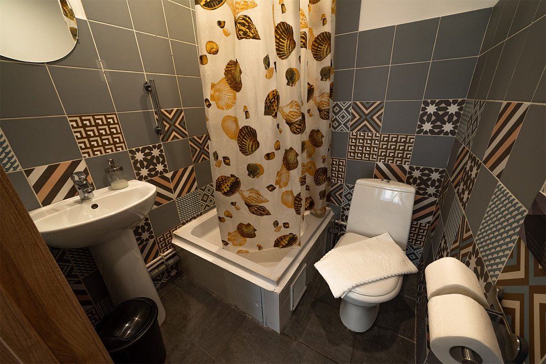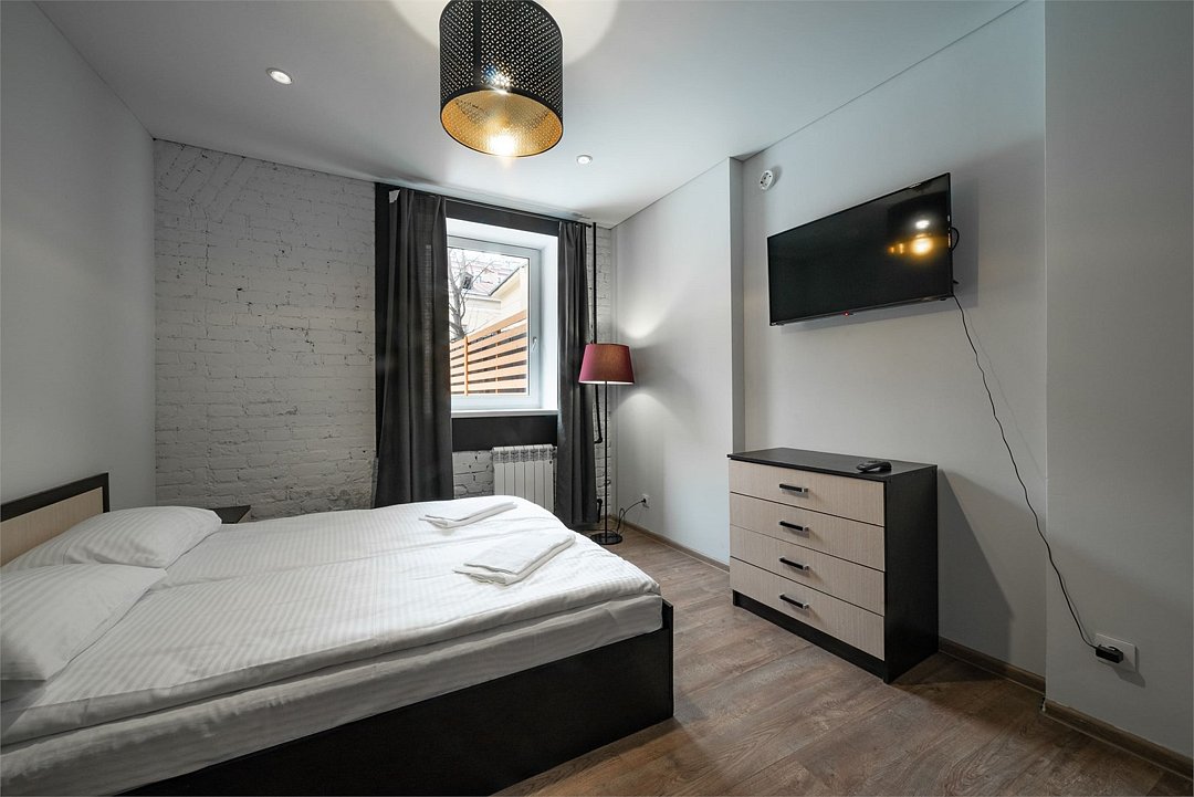 Площадь - 63 м2. Апартаменты расположены на 1 этаже с видом на тихий двор и оборудованы всем необходимым для комфортного проживания: двумя двуспальными кроватями, двуспальным угловым диваном, постельным бельем, а также предоставляется по 2 полотенца на каждого гостя. Апартаменты оснащены собственной кухонной зоной с мини-холодильником, барной стойкой и барными стульями, микроволновой печью, электрическим чайником, посудой, столовыми приборами. Также, в апартаментах собственная ванная комната: душ, раковина, водонагреватель, туалет, фен. В общем доступе: стиральная машина, утюг и гладильные принадлежности. На всей территории работает высокоскоростной бесплатный Wi-Fi. Заселение происходит дистанционно, с помощью заранее отправленной инструкции. Дополнительно можно приобрести на ресепшен: - зубной набор - бритвенный - косметический - шапочку для душа - беруши - тапочкиУслуги и удобства