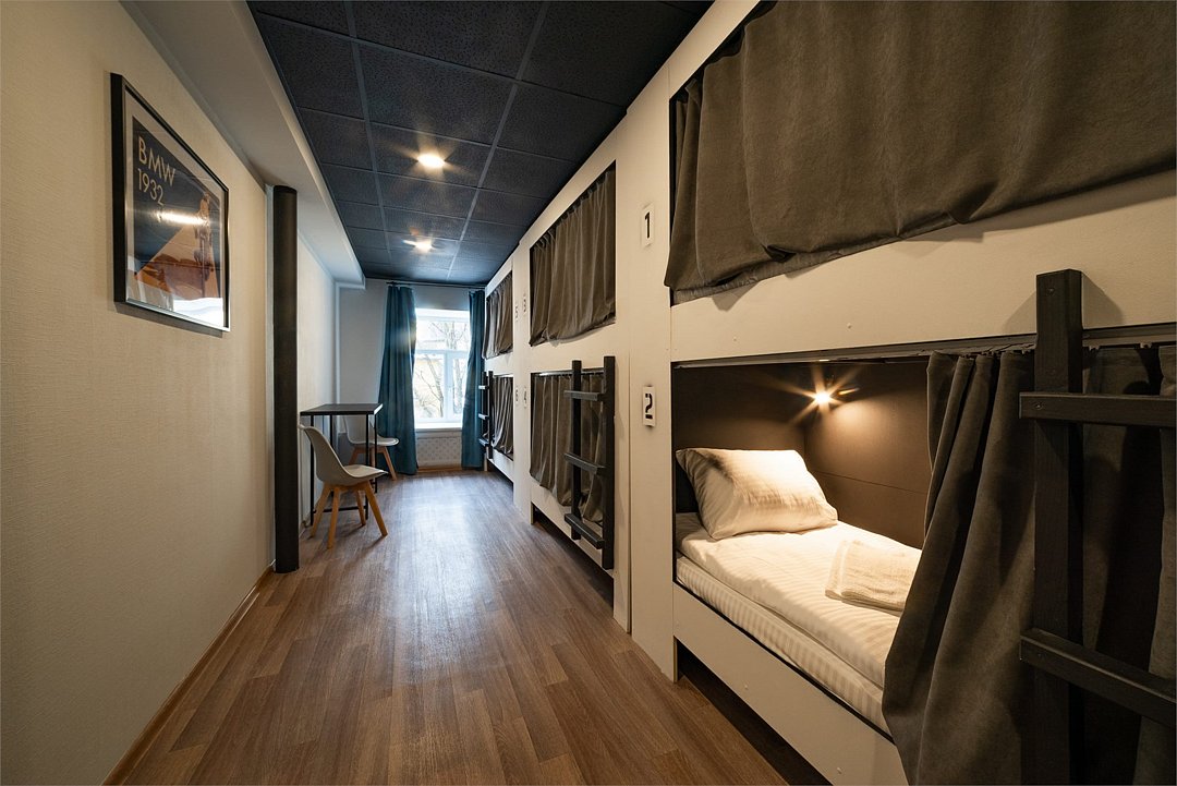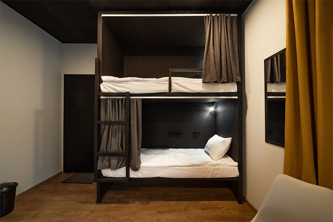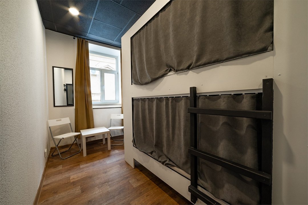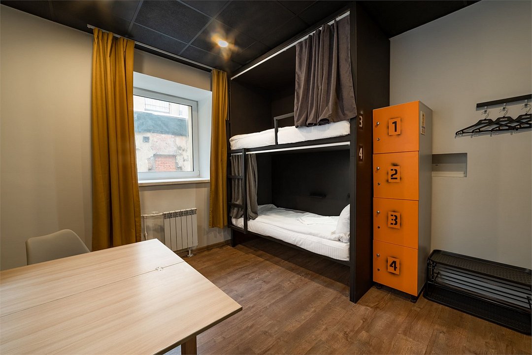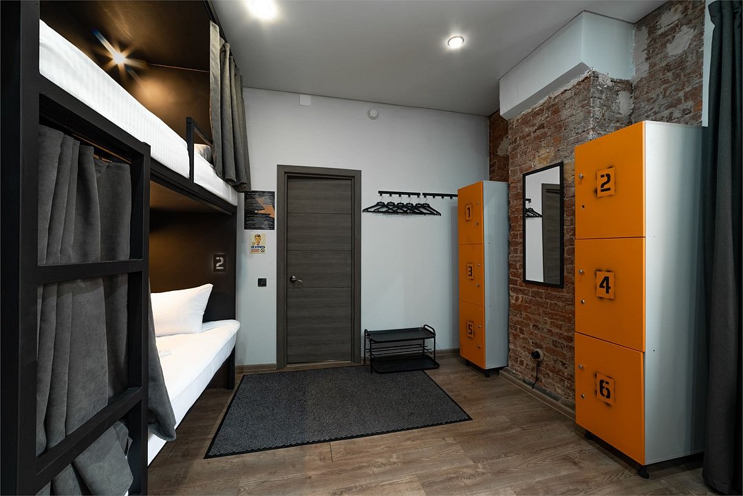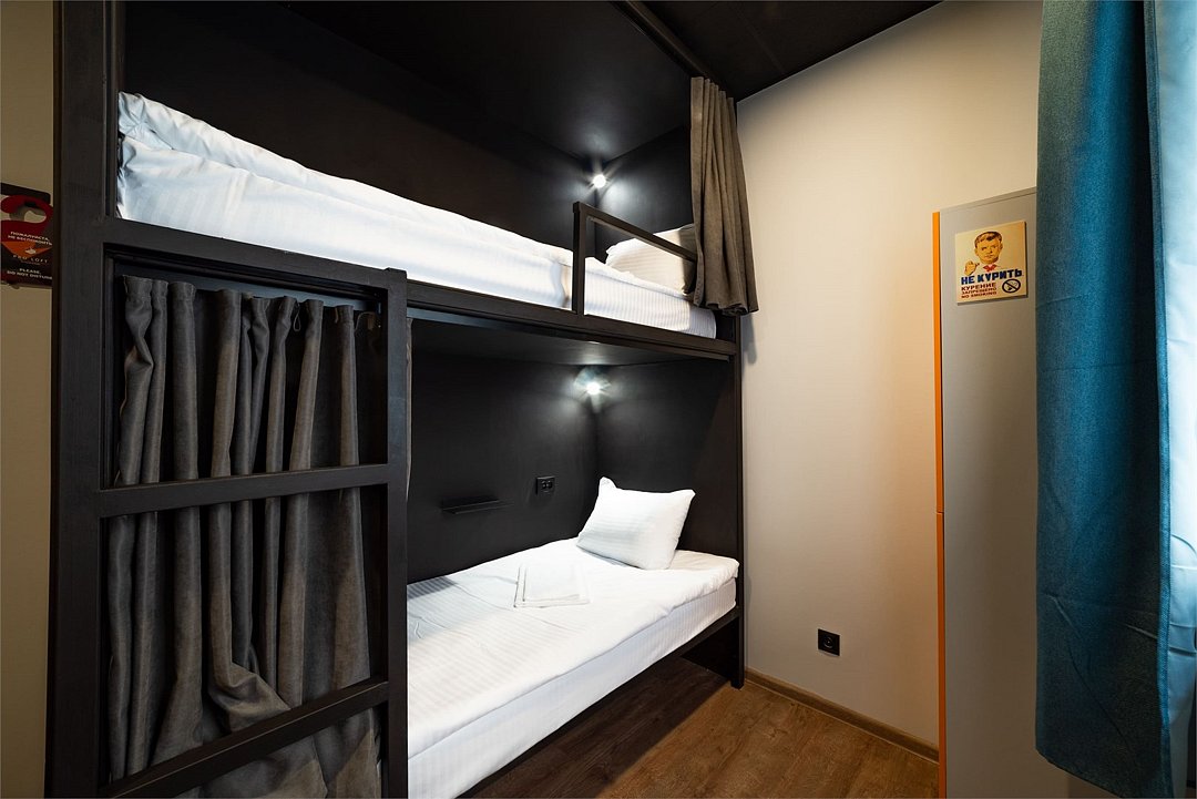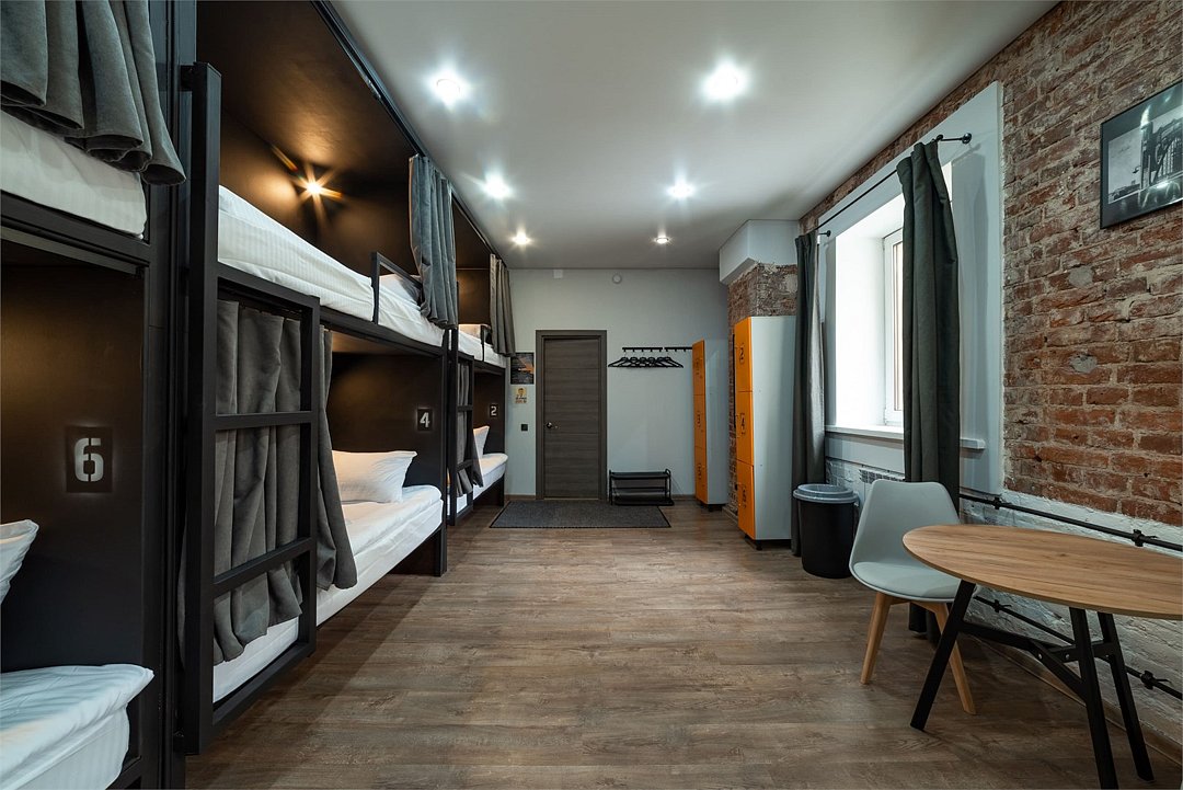 Площадь - от 16 м2 до 25м2 Номер находится на 1 или 2 этаже с окнами, выходящими на тихий двор. У каждого гостя своя кровать со шторками из плотной ткани, полкой, светильником, розеткой. В номере есть локеры, стол со стульями. В общем доступе: 10 душевых и 11 туалетов, кухня с обеденной зоной (микроволновка, мультиварка, электрический чайник, холодильник, посуда, столовые приборы), стиральная машина, утюг и гладильные принадлежности. На всей территории работает высокоскоростной бесплатный Wi-Fi. Заселение происходит дистанционно, с помощью заранее отправленной инструкции. Дополнительно можно приобрести на ресепшен: - зубной набор - бритвенный - косметический - шапочку для душа - беруши - дополнительные тапочкиУслуги и удобства