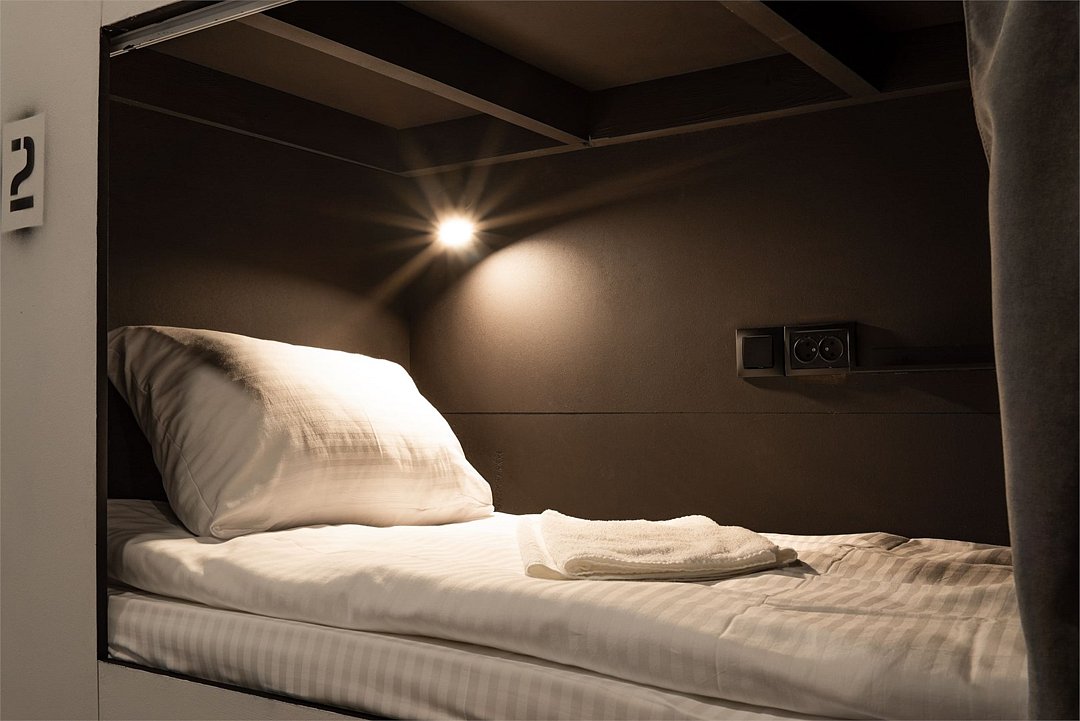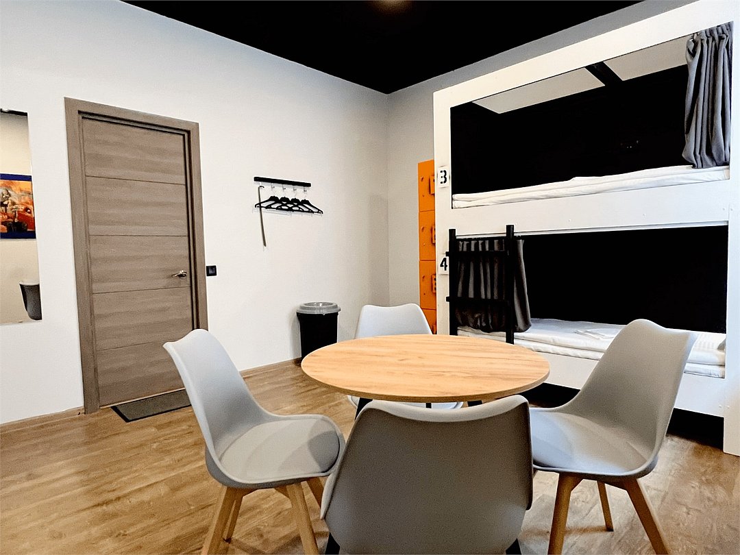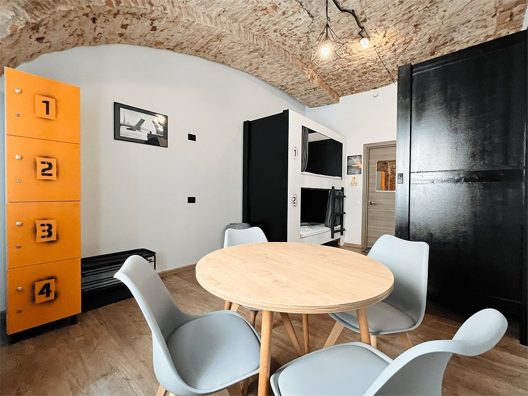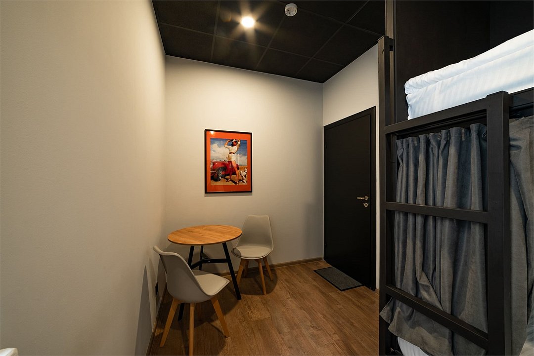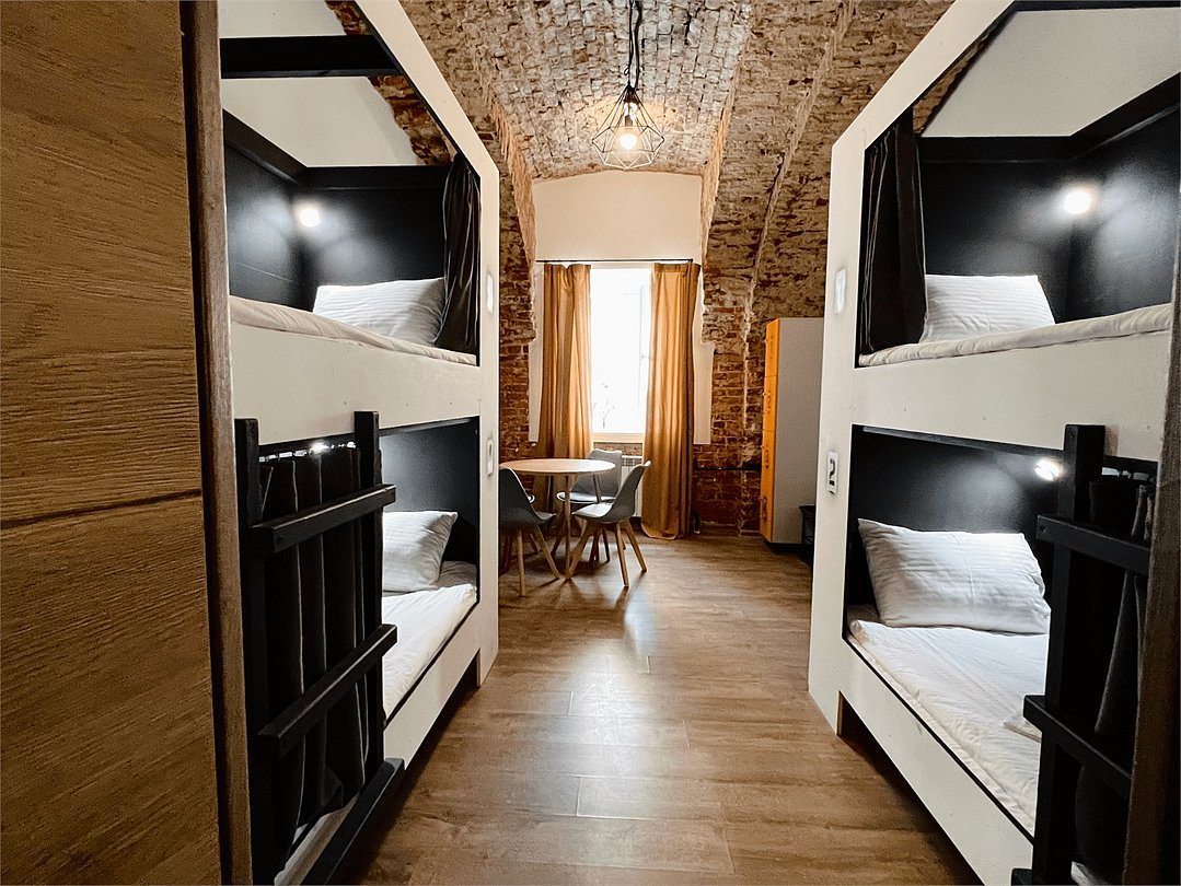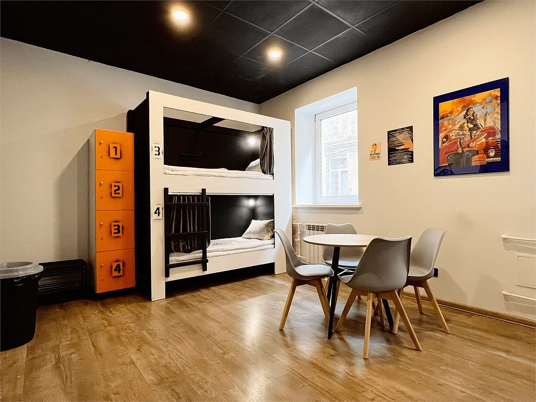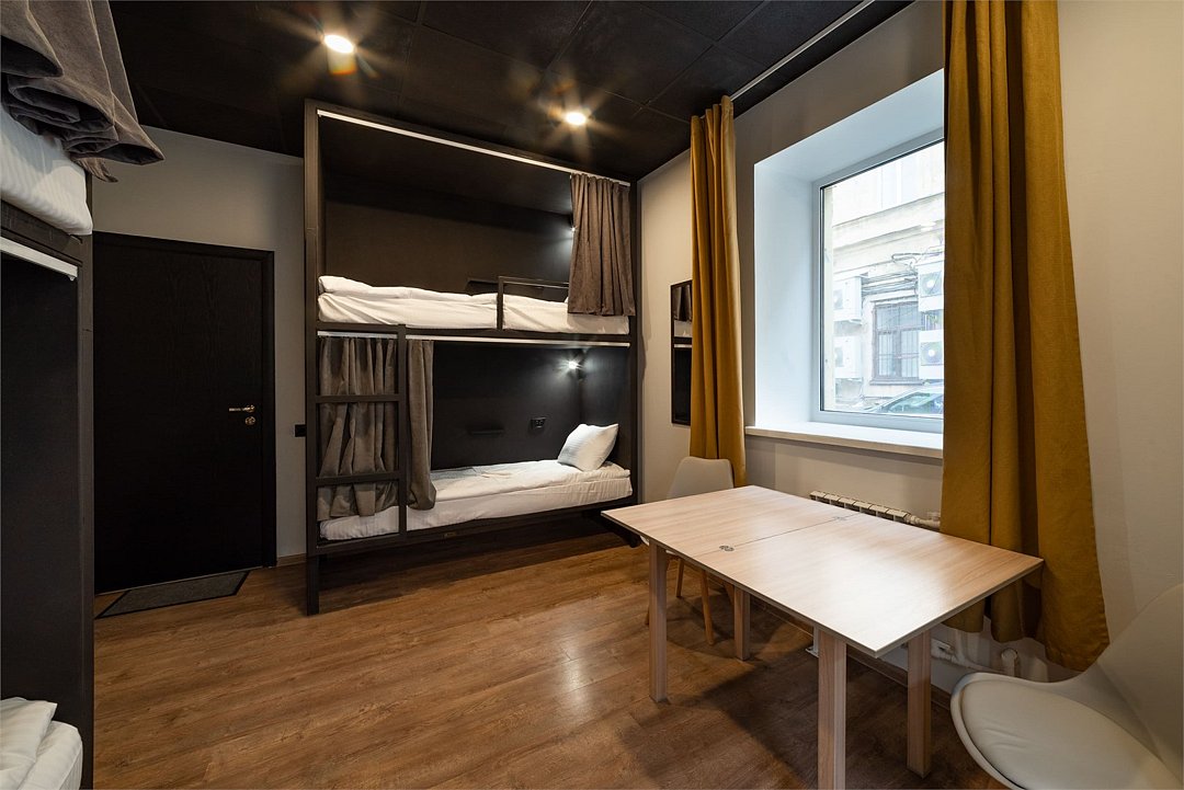 Площадь - от 16 м2 до 25м2 Номер находится на 1 или 2 этаже с окнами, выходящими на тихий двор. У каждого гостя своя кровать со шторками из плотной ткани, полкой, светильником, розеткой. В номере есть локеры, стол со стульями. В общем доступе: 10 душевых и 11 туалетов, кухня с обеденной зоной (микроволновка, мультиварка, электрический чайник, холодильник, посуда, столовые приборы), стиральная машина, утюг и гладильные принадлежности. На всей территории работает высокоскоростной бесплатный Wi-Fi. Заселение происходит дистанционно, с помощью заранее отправленной инструкции. Дополнительно можно приобрести на ресепшен: - зубной набор - бритвенный - косметический - шапочку для душа - беруши - дополнительные тапочкиУслуги и удобства