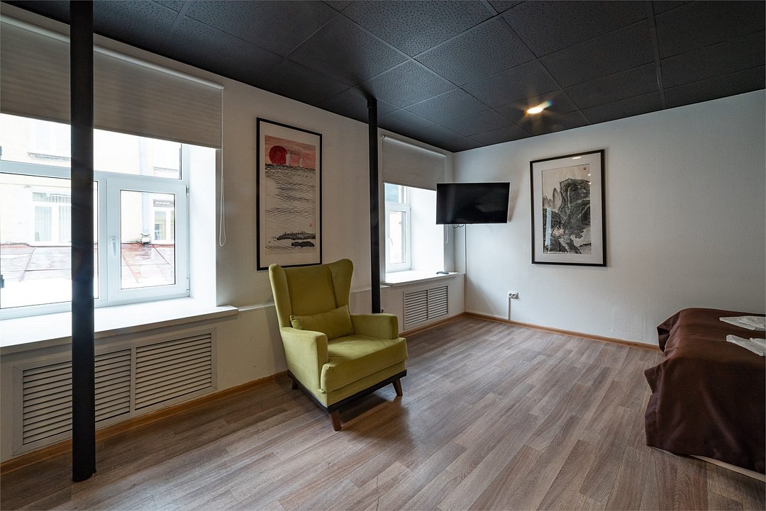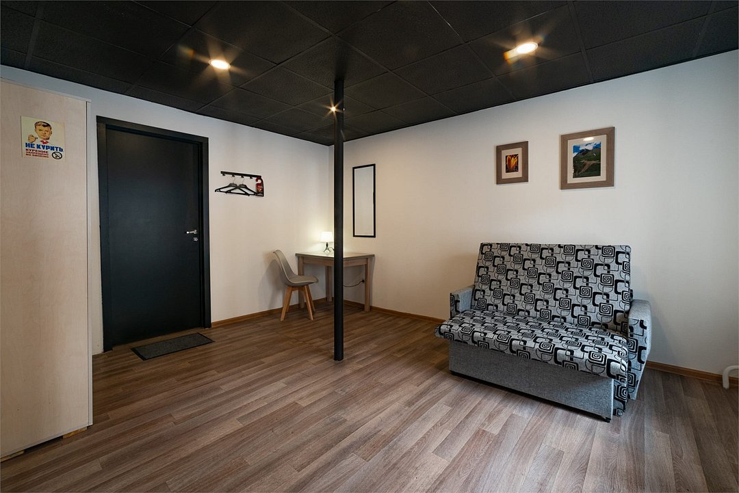 Площадь - 31м2 Трехместный номер расположен на 2 этаже с видом на тихий двор, оборудован всем необходимым для комфортного проживания: двуспальной кроватью с пружинным матрасом, раскладным диваном, постельным бельем, по 2 полотенца на каждого гостя, телевизором с ТВ-приставкой. В общем доступе: 10 душевых и 11 туалетов, кухня с обеденной зоной (микроволновка, мультиварка, электрический чайник, холодильник, посуда, столовые приборы), стиральная машина, утюг и гладильные принадлежности. На всей территории работает высокоскоростной бесплатный Wi-Fi. Заселение происходит дистанционно, с помощью заранее отправленной инструкции. Дополнительно можно приобрести на ресепшен: - зубной набор - бритвенный - косметический - шапочку для душа - беруши - тапочкиУслуги и удобства