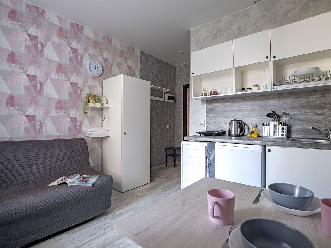 Просторные, светлые апартаменты для двоих (возможно 1 доп место), со своим сан узлом и мини кухней. ВНИМАНИЕ! Для подтверждения брони требуется предоплата в размере стоимости первой ночи. Отмена бронирования: Бесплатная отмена бронирования возможна за 5 дней до даты заезда. В случае отмены менее чем за 5 дней взимается штраф в размере первых суток.В номере