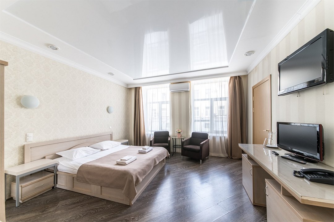 Стандартный номер с двумя раздельными кроватями предлагает комфортное пространство для отдыха и работы. Всё необходимое для успешного делового визита в самом сердце Санкт-Петербурга.Услуги и удобства