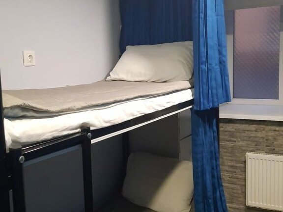 Восьмиместные мужские и женские номера с двухярусными кроватями . Душ в номере. Возле каждой кровати розетка, каждое спальное место закрывается шторкой. Постельное белье входит в стоимость. Комплект полотенец в стоимость не входит. В номере есть шкафы закрывающиеся на ключ.В номере