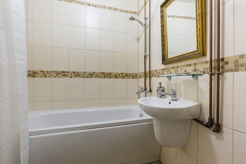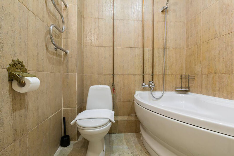 2) Странно оформленная ванная комната: у нас была большая угловая ванна. Но душ над ней был закреплён сбоку и не было никакой занавески. Помыться и не залить пол – сложно. Раковина, почему-то, закреплена на уровне коленей. Чтобы почистить зубы и побриться – приходится нагибаться.