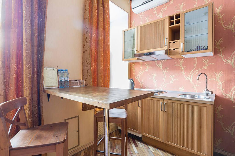 Отель разместился в 4-х этажном здании бывшего доходного дома XIX столетия, в котором в юности жил известный композитор Рахманинов. Гостей ожидают номера категории Стандарт, Комфорт, Люкс — их изящные интерьеры с паркетным полом стилизованы под моду Серебряного века. Во всех комнатах красивая резная мебель, на стенах висят в рамах висят портреты и пейзажи, есть и все необходимое для современного комфорта — санузел с душем, фен, телевизор, а в Люксах — оборудована мини-кухня.