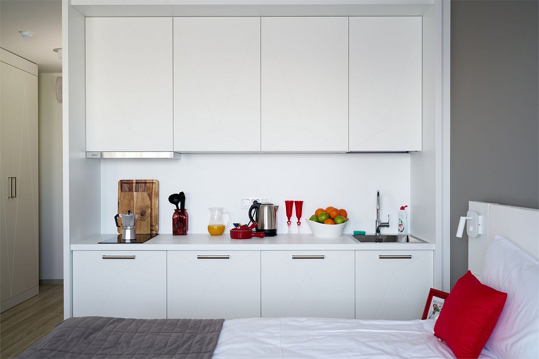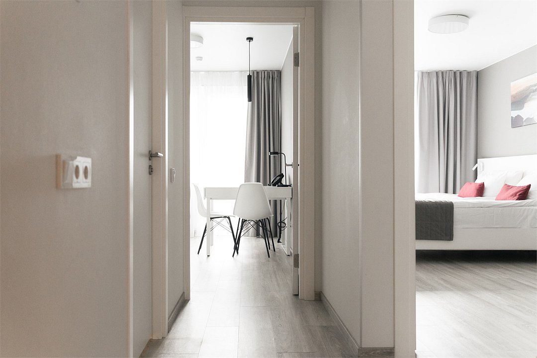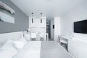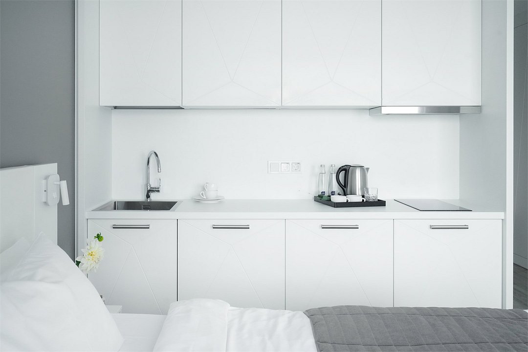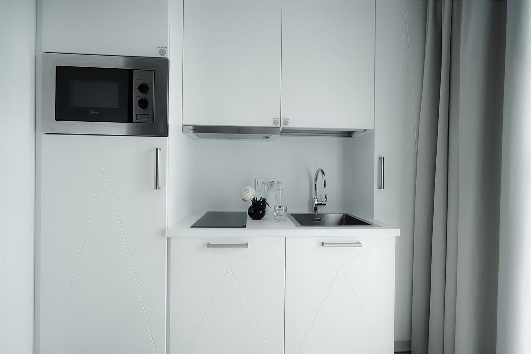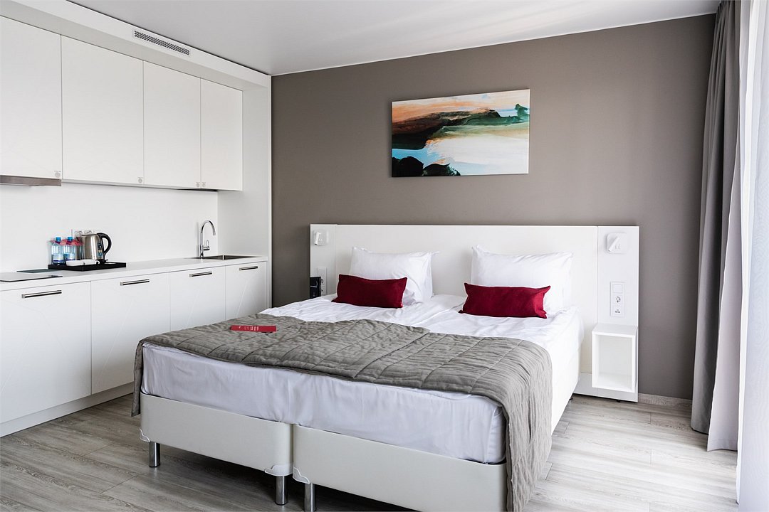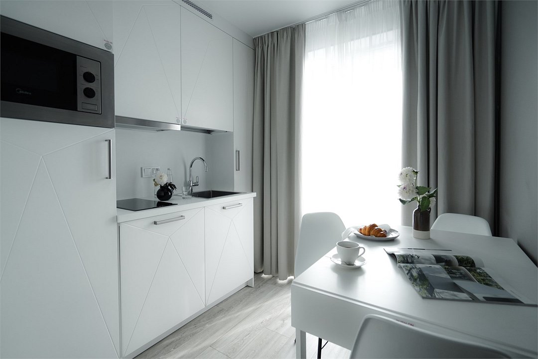 Просторный и комфортный номер с тщательно организованным пространством. Оригинальный дизайн интерьеров в стиле скандинавского минимализма и эффективного зонирования. Отдельная кухня-гостиная прекрасно подходит для встречи гостей - имеется полный комплект необходимой техники и посуды. В ванной комнате установлена стиральная машина для экономии времени и высокого качества немецкая сантехника. Обращаем внимание, что каждое первое число месяца в бассейне и сауне Fitness House проводится санитарный день. Посещение фитнес-центра и бассейна доступно только для гостей старше 14 лет! Регистрационный сбор для иностранных граждан составляет 300 р. за каждого гостя и оплачивается непосредственно в отеле при заселении.Услуги и удобства