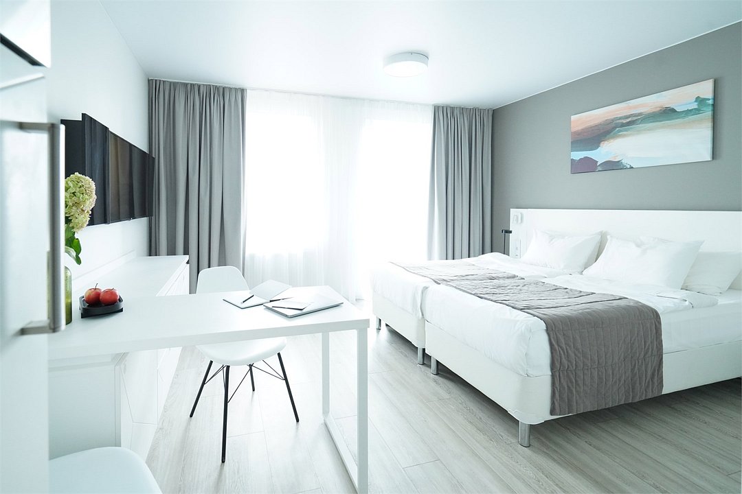 кабельное телевидение, Wi-Fi, телефон, холодильник, светильник, фен, электронные замки, плита для приготовления пищи, микроволновая печь, утюг, ванная комната, ванна, халаты, банные полотенца, тапочки, косметические средства, двуспальная кровать, две односпальные кровати, гладильная доска, тумбы, стулья, шкаф для одежды, вешалки, письменный стол, обеденный стол, зеркало, звуконепроницаемые стены и окна, письменные принадлежности, чайный набор, информационная карта, меню, сейф, посудомоечная машина, стиральная машина, чайник, унитаз, раковина, питьевая вода, отопление, вид на город, вид во двор, ламинат, кухонная посуда, стаканы, столовые приборы, туалетные средства, сушилка для белья, телевизор с плоским экраном, мини-кухня, номер для некурящих, usb порт, морозильная камера, чайная станция, можно с питомцамиВ номере