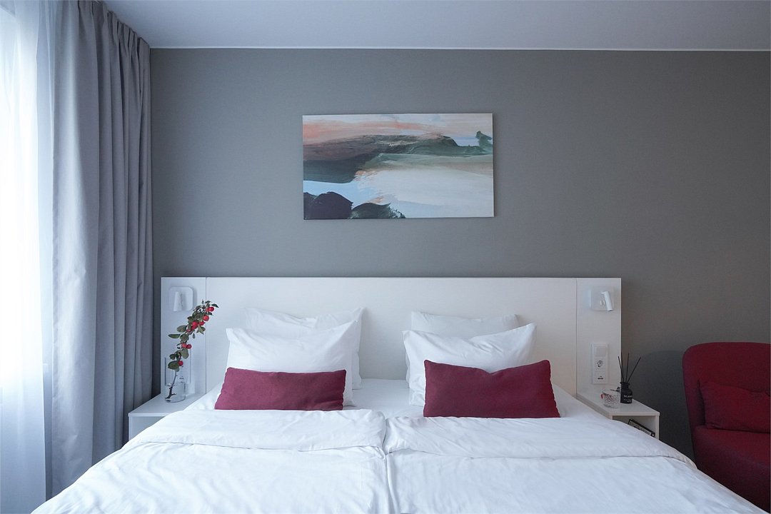 кабельное телевидение, Wi-Fi, телефон, холодильник, светильник, фен, электронные замки, плита для приготовления пищи, кофемашина, микроволновая печь, утюг, ванная комната, ванна, халаты, банные полотенца, тапочки, косметические средства, балкон, двуспальная кровать, две односпальные кровати, гладильная доска, тумбы, стулья, шкаф для одежды, вешалки, письменный стол, обеденный стол, зеркало, кухня, звуконепроницаемые стены и окна, письменные принадлежности, чайный набор, информационная карта, меню, сейф, посудомоечная машина, стиральная машина, чайник, унитаз, раковина, питьевая вода, отопление, вид на город, вид во двор, ламинат, кухонная посуда, стаканы, столовые приборы, туалетные средства, сушилка для белья, телевизор с плоским экраном, номер для некурящих, usb порт, морозильная камера, чайная станция, можно с питомцамиВ номере