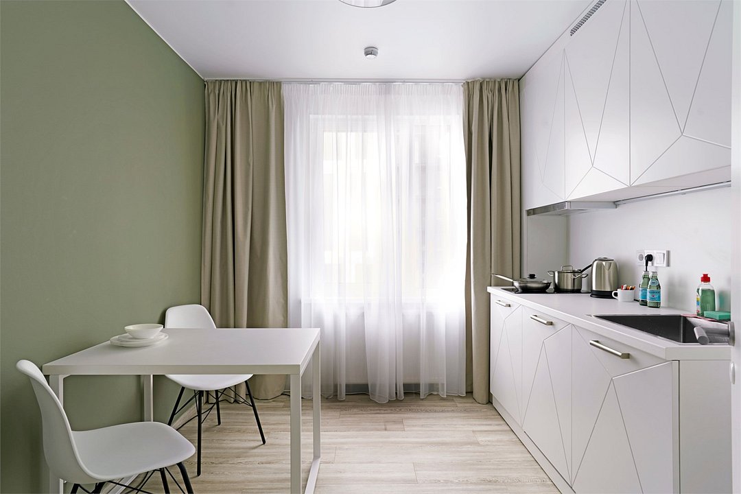 Просторный и комфортный номер с тщательно организованным пространством. Оригинальный дизайн интерьеров в стиле скандинавского минимализма и эффективного зонирования. Отдельная кухня-гостиная прекрасно подходит для встречи гостей - имеется полный комплект необходимой техники и посуды. В ванной комнате установлена стиральная машина для экономии времени и высокого качества немецкая сантехника. Обращаем внимание, что каждое первое число месяца в бассейне и сауне Fitness House проводится санитарный день. Посещение фитнес-центра и бассейна доступно только для гостей старше 14 лет! При выборе тарифа ЛАЙТ в стоимость не включено посещение бассейна и саун. Стоимость разового посещения составляет 1400 руб./чел. Регистрационный сбор для иностранных граждан составляет 300 р. за каждого гостя и оплачивается непосредственно в отеле при заселении.Услуги и удобства