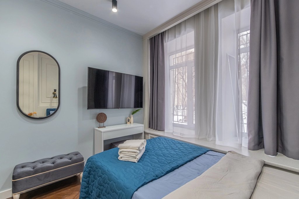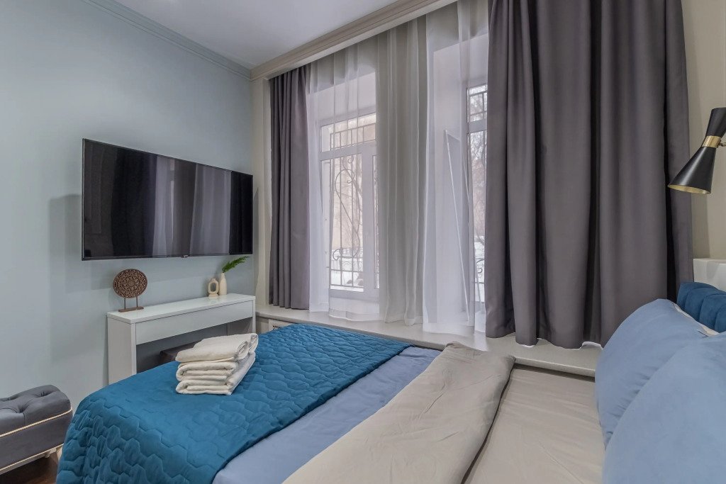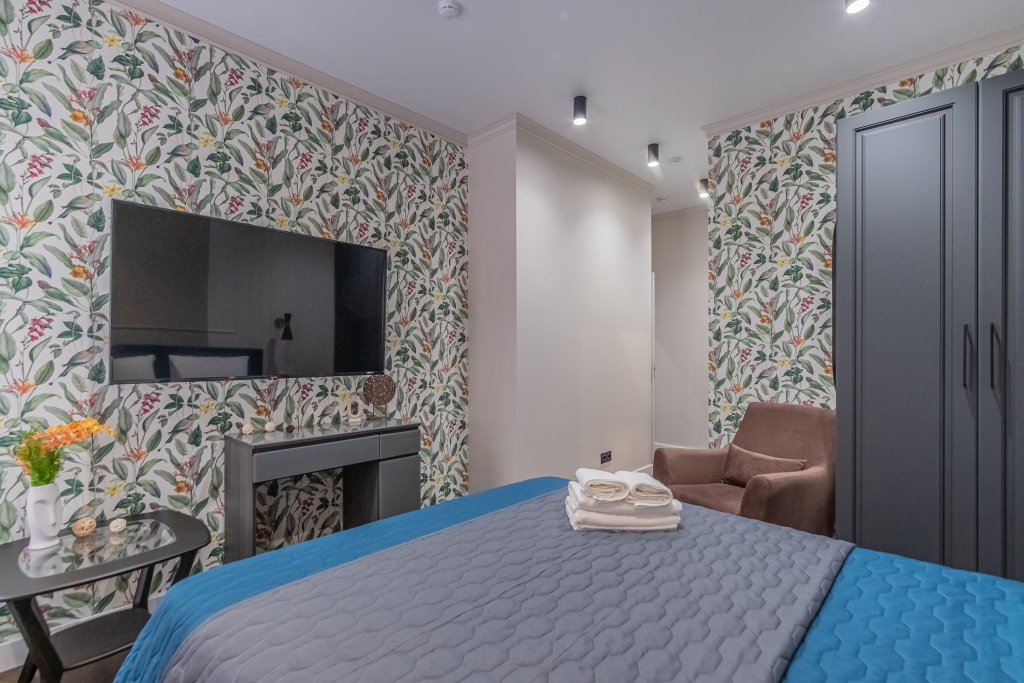 Номер уютно обставлен и оснащён необходимым, чтобы отдохнуть после долгого и насыщенного дня. Имеются телевизор. Оснащение зависит от выбранной категории номера.