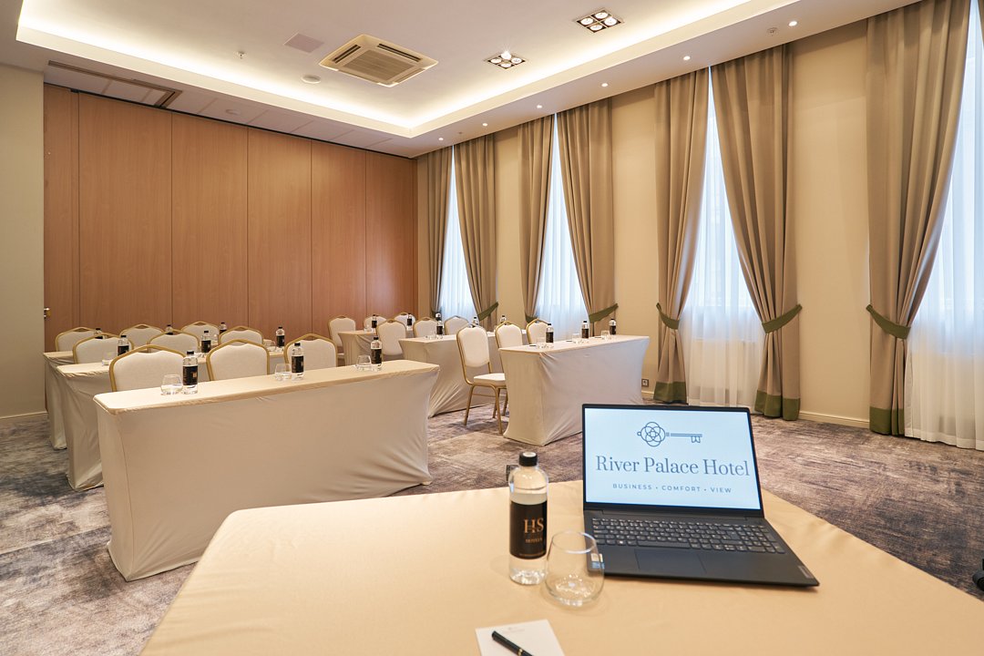 Рассчитан на 70 человек. Площадь 87 кв.м. Представительная площадка для мероприятий в центре Петербурга на 70 человек. Идеальный выбор для проведения конференции, семинара, презентации, совещания. Аренда зала для делового мероприятия в отеле River Palace — отличное решение для Вашего бизнеса.