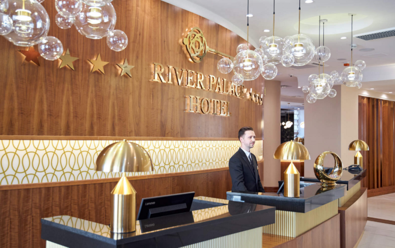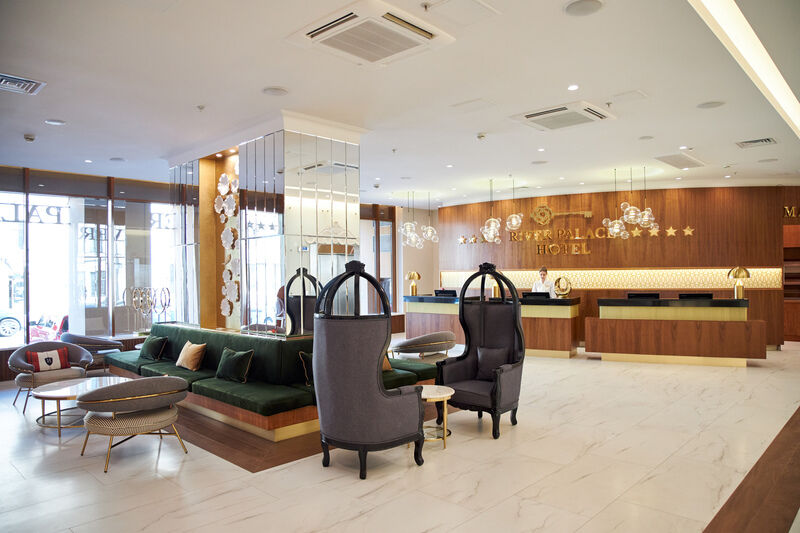River Palace Hotel порадует любителей европейской кухни прекрасным выбором вин и авторскими блюдами. Вы сможете насладиться обедом или ужином в просторном зале на 120 гостей с элегантным интерьером. Формат ресторана River легко позволяет проводить бизнес-встречи, торжества, неформальные встречи узким кругом. Гости отеля могут начать день с прекрасного завтрака в формате шведского стола, а завершить его изысканным ужином или коктейлем в баре.