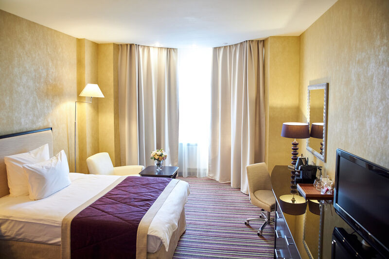 В отеле работает ресторан с русской и итальянской кухней, в лобби-баре всегда можно выпить чашечку чая или кофе. К услугам отдыхающих тренажерный зал и прачечная. На всей территории доступен беспроводной интернет, а для автовладельцев предусмотрена крытая парковка. Особые условия для юных гостей — в ресторане есть детское меню, а малышам отель предоставляет кроватки-манежи. Все деловые мероприятия — встречи, семинары, тренинги, переговоры можно провести в одном из восьми конференц-залов. Залы, вмещающие от 20 до 180 приглашенных, оборудованы современной мультимедийной техникой: есть ноутбук, проектор, звуковая аппаратура, микшерный пульт.