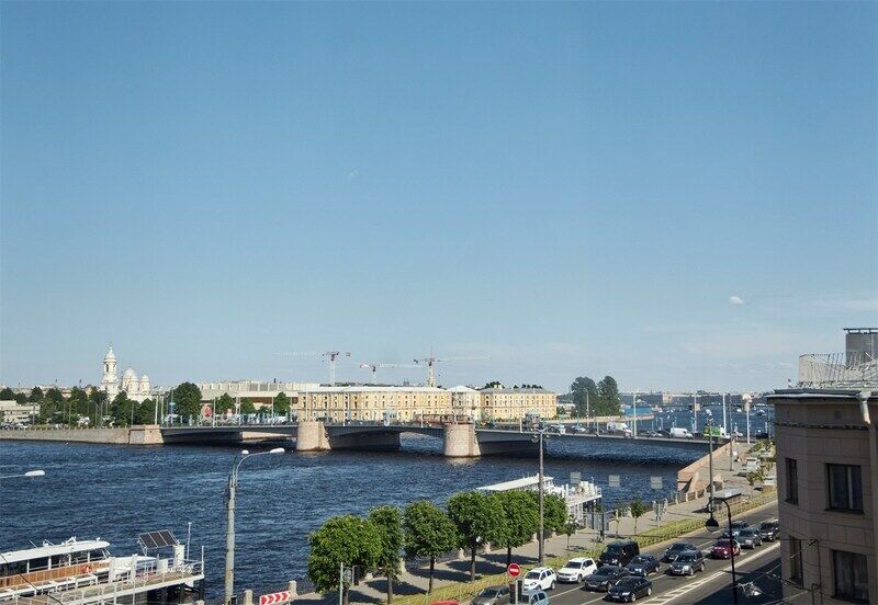 Из окон номеров открывается вид на Неву. Есть выход на видовую террасу.