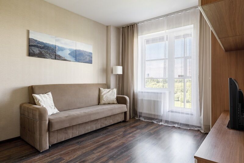 Отель разместился в новом многоэтажном здании, возвышающемся среди современного жилого комплекса. Просторный жилой фонд апарт-отеля способен единовременно разместить более 100 отдыхающих. Гостей ожидают светлые стильные апартаменты, из окон которых открываются красивые виды на зеленый Пулковский парк. В номерах предусмотрен индивидуальный санузел с душевой кабиной, оборудованная бытовой техникой кухня, плазменный телевизор, фен, сеть wi-fi. В апартаментах класса люкс установлена стиральная машина. Также среди услуг отеля — охраняемая автостоянка.