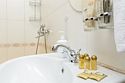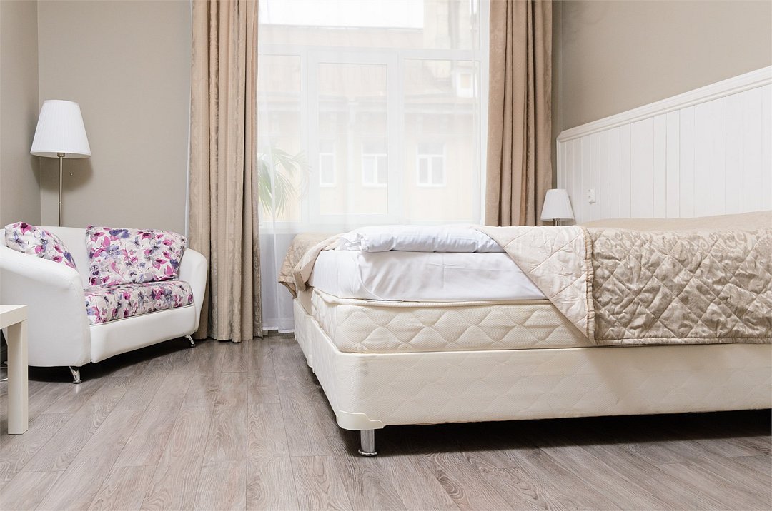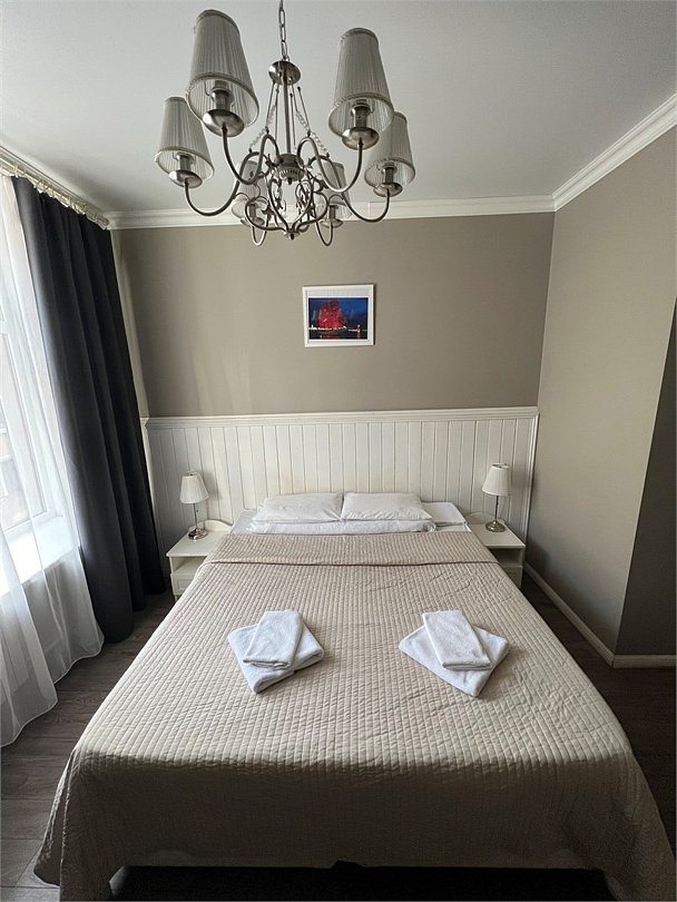 Номер повышенной комфортности, воздушный легкий интерьер в стиле "Прованс" в светлых тонах, уютная мебель, вид на тихую улицу – вся обстановка располагает к тому, чтобы Вы могли чувствовать себя как дома. В номере есть все необходимое для комфортного проживания: современная мебель, ТВ, кабельные/спутниковые телеканалы, бесплатный WI-FI, телефон, индивидуальный кондиционер. Ванная комната оборудована современной сантехникой и предметами личной гигиены. Это отличный вариант как для длительного, так и для краткосрочного проживания.Услуги и удобства