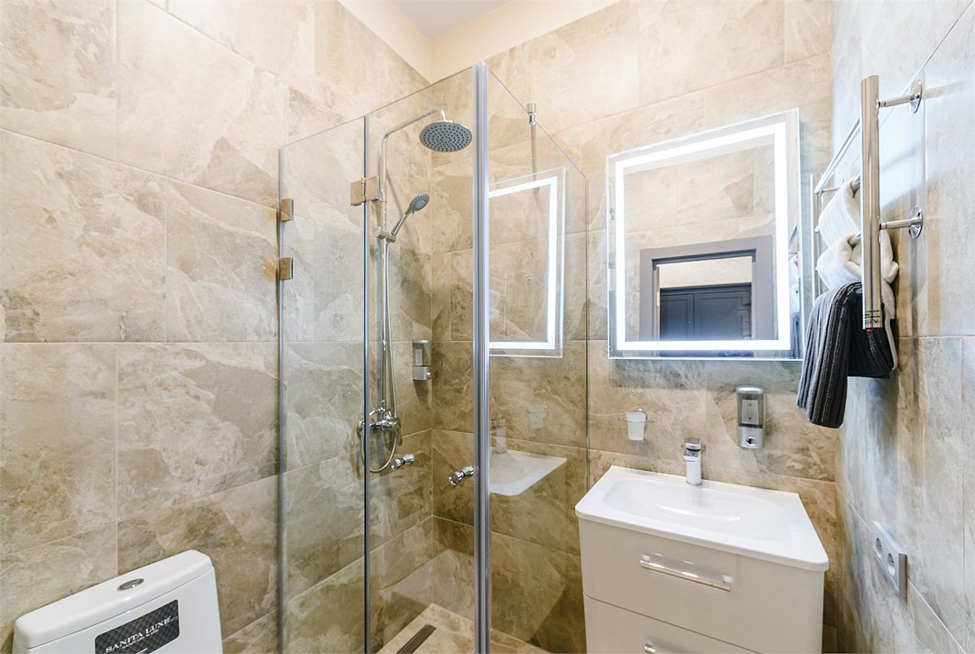 В улучшенном номере с одной двуспальной кроватью имеется всё самое необходимое для комфортного проживания. Кровать с удобным матрасом и прикроватные тумбочки, вместительный шкаф с личным сейфом, письменный стол, мини-холодильник, смарт-ТВ и личные удобства. В ванной комнате: набор полотенец для каждого гостя, тапочки и зубные наборы, фен, шампунь и гель для душа. В общей зоне отеля расположен кулер с водой, посуда и столовые приборы, микроволновая печь и гладильные принадлежности.Услуги и удобства