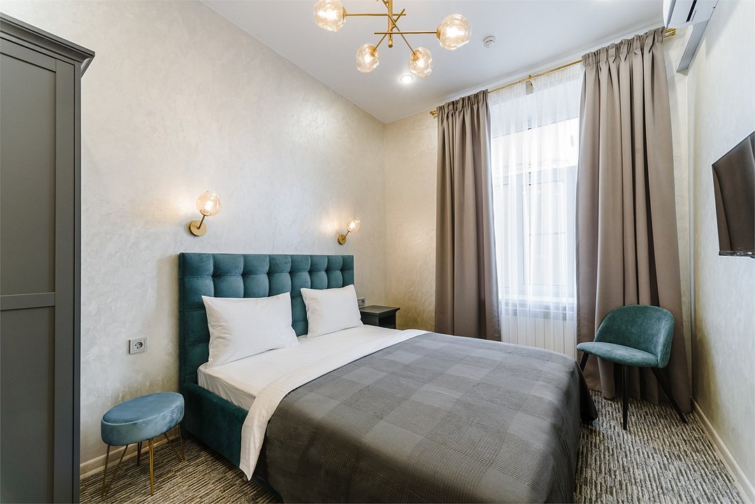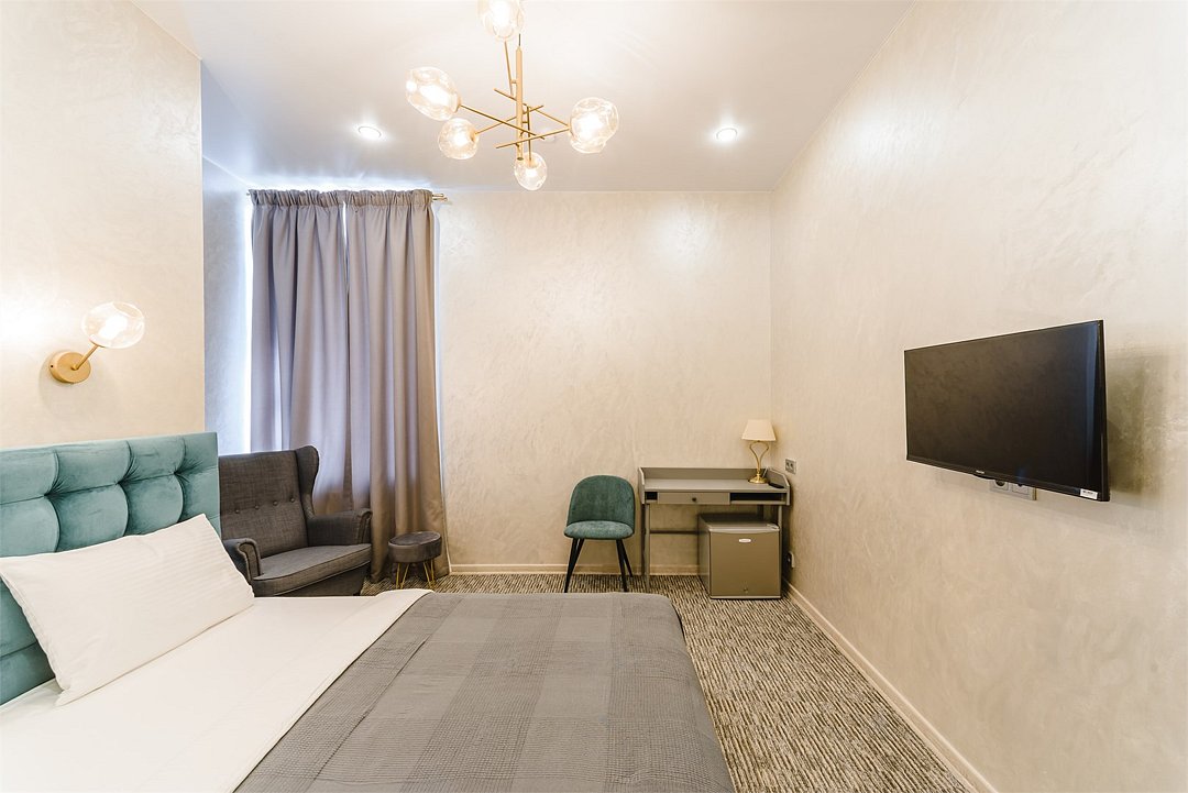 В стандартном номере с одной двуспальной кроватью имеется всё самое необходимое для комфортного проживания. Кровать с удобным матрасом и прикроватные тумбочки, вместительный шкаф с личным сейфом, письменный стол, мини-холодильник, смарт-ТВ и личные удобства. В ванной комнате: набор полотенец для каждого гостя, тапочки и зубные наборы, фен, шампунь и гель для душа. В общей зоне отеля расположен кулер с водой, посуда и столовые приборы, микроволновая печь и гладильные принадлежности.Услуги и удобства