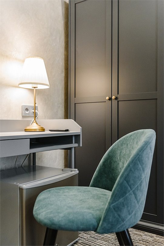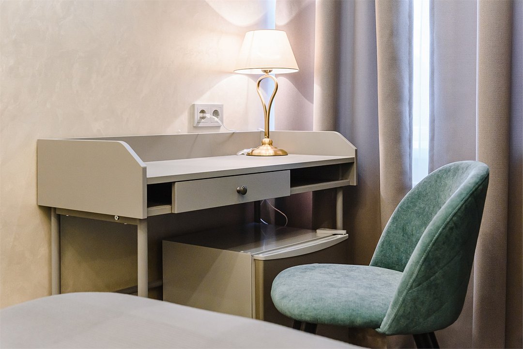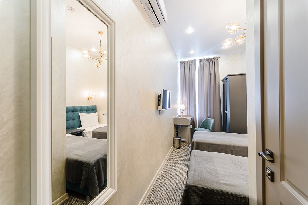 В стандартном номере с двумя отдельными кроватями имеется всё самое необходимое для комфортного проживания. Кровати с удобным матрасом и прикроватная тумбочка, вместительный шкаф с личным сейфом, письменный стол, мини-холодильник, смарт-ТВ и личные удобства. В ванной комнате: набор полотенец для каждого гостя, тапочки и зубные наборы, фен, шампунь и гель для душа. В общей зоне отеля расположен кулер с питьевой водой, посуда и столовые приборы, микроволновая печь и гладильные принадлежности.Услуги и удобства