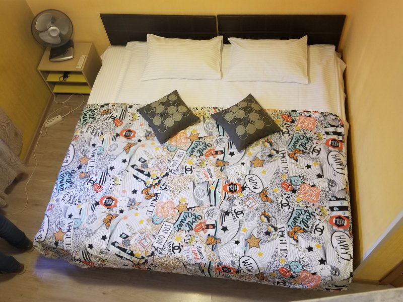 Удобный номер с большой двуспальной кроватью.В гостиничном номере