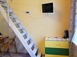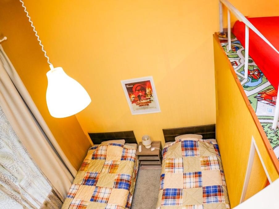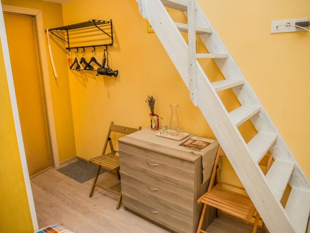 Двухуровневые номера с двуспальными кроватями или двумя односпальными внизу и двуспальным местом на втором уровне.В гостиничном номере