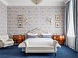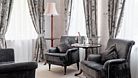 Роскошный двухкомнатный люкс с видом на Финский Залив или Дачу Лихачева, площадью до 75 кв.м. Номер богато обставлен предметами антиквариата, в дизайне интерьера преобладает золотистое, голубое или коралловое цветовое решение. В номере большая двуспальная кровать, мягкая мебель, письменный стол, журнальный столик, встроенный гардероб с отделениями для багажа, телефон, LCD телевизор, мини бар с ассортиментом безалкогольных напитков и легких закусок, сейф. В ванной комнате: ванна, душевая кабина, фен, полы с подогревом, европейские косметические принадлежности, халаты, тапочки и набор хлопковых полотенец. Ресторанное обслуживание в номере 24 часа.