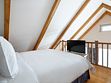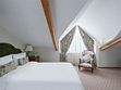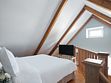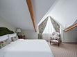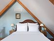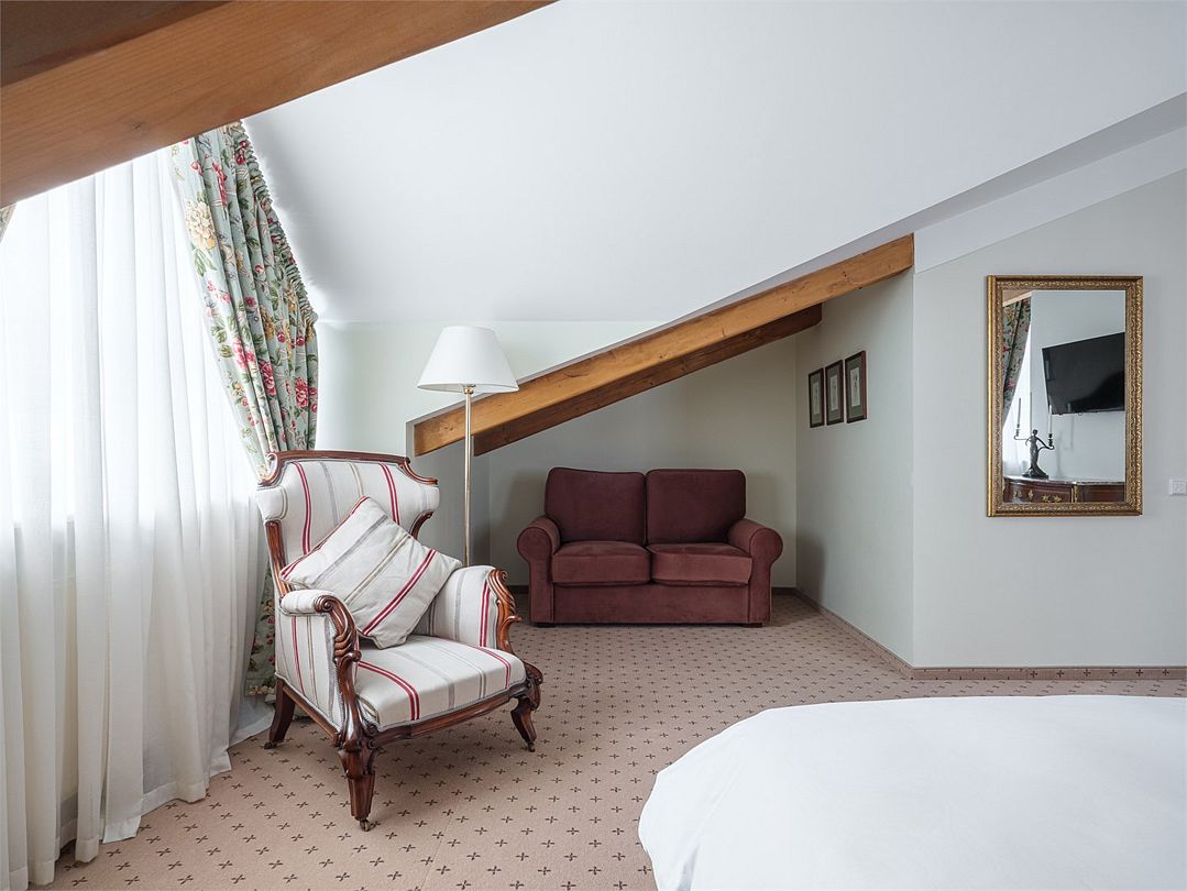 Уютный однокомнатный номер с общей площадью 20 кв. м., расположен под крышей на третьем этаже главного здания отеля. Из номера открывается вид на бассейн или на тихую улицу.