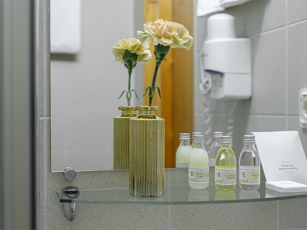 В номере расположены: одна или две кровати, журнальный столик, телевизор, сейф, прямая телефонная линия и комплементарный мини бар с ассортиментом безалкогольных напитков. Удобная ванная комната с подогреваемым полом, оборудованная душевой кабиной, феном, также к вашим услугам косметические принадлежности, халаты, тапочки и комплект полотенец.