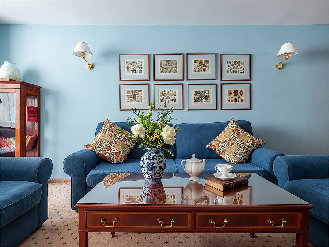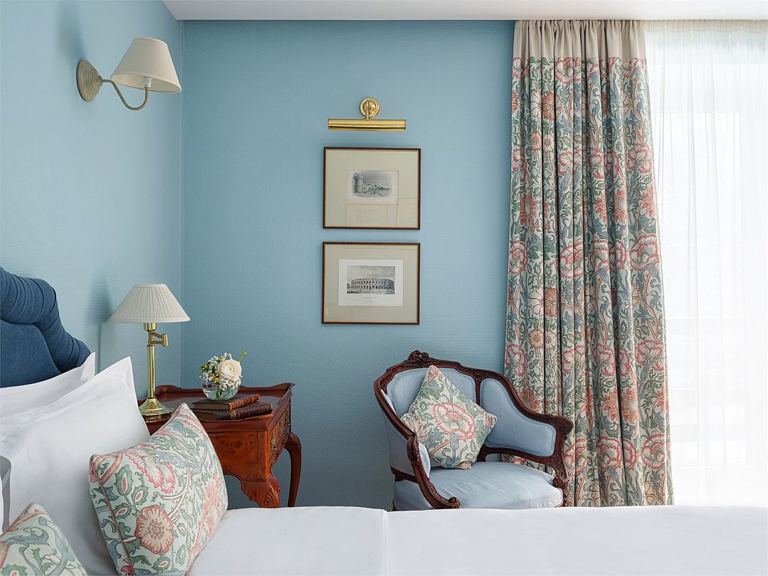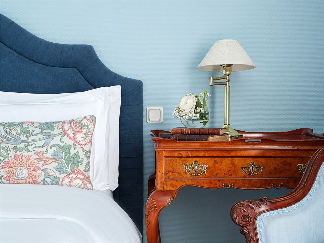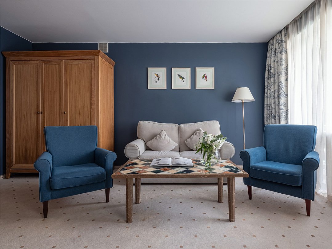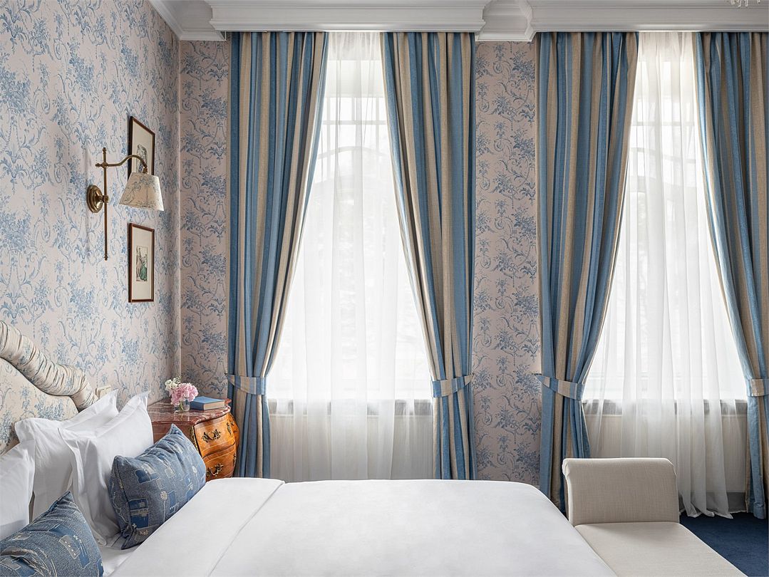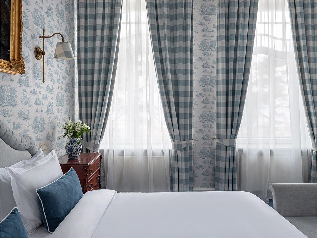 Роскошно оформленный двухкомнатный сьют площадью более 60 кв. м. расположен на втором этаже Дачи Шелепина, из номера открывается вид на Финский Залив. В дизайне интерьера преобладает голубое цветовое решение, и номер шикарно обставлен предметами антиквариата. В номере большая двуспальная кровать, мягкая мебель, письменный стол, журнальный столик, встроенный гардероб с отделениями для багажа, телефон, беспроводной доступ в Интернет, LCD телевизор, сейф, комплементарный мини бар с ассортиментом безалкогольных напитков и легких закусок. В ванной комнате: ванна, душевая кабина, фен, полы с подогревом, набор хлопковых полотенец, халаты, тапочки и европейские косметические принадлежности. Ресторанное обслуживание в номере 24 часа.