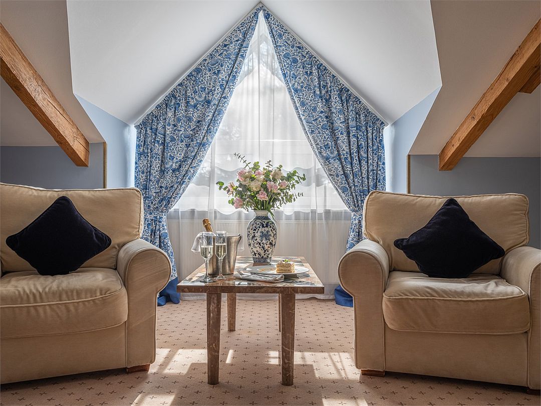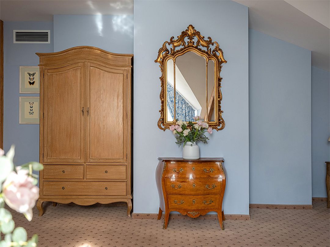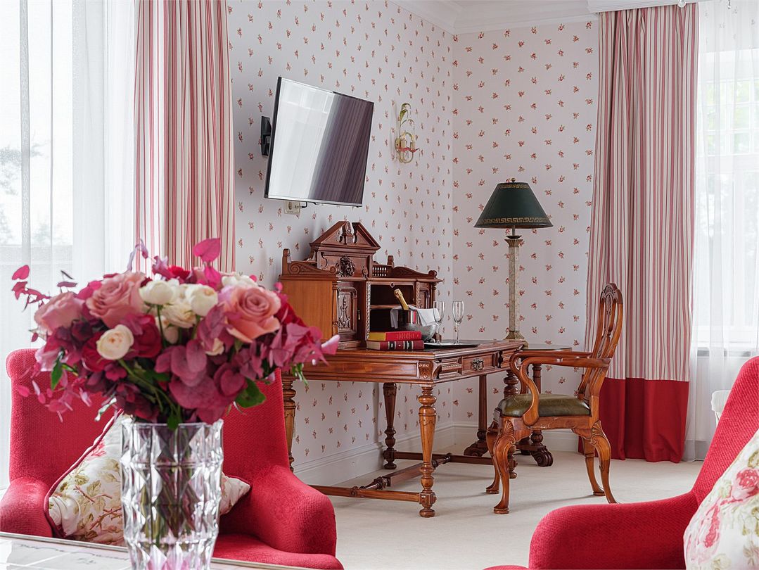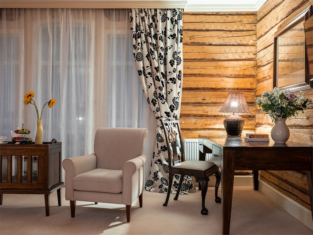 Элегантный однокомнатный номер, площадью более 40 кв. м., с изысканным интерьером в классическом стиле и элементами антиквариата. Номер оснащен собственной террасой с видом на Финский залив и персональной сауной. Здесь Вы найдёте всё для приятного романтического отдыха.