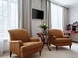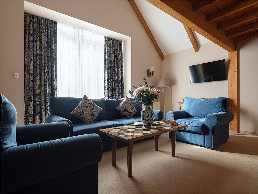 Просторные двухкомнатные апартаменты площадью 65-75 кв. м. расположены на первом или втором этажах. В номере к вашим услугам: двуспальная кровать, мягкая мебель, письменный стол, журнальный столик, обеденный стол, телефон, LCD телевизор, беспроводной доступ в Интернет, сейф. Кухня оснащена встроенной плитой, микроволновой печью, посудомоечной машиной и холодильником. В большой ванной комнате расположена круглая ванна на уровне пола или ванна на львиных лапах, душевая кабина, фен, халаты, тапочки и европейские косметические принадлежности. Ресторанное обслуживание в номере 24 часа.