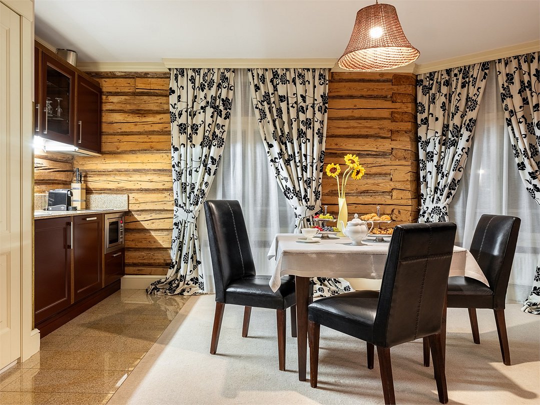 Декорированная в загородном стиле, Дача Лихачева имеет шесть романтических апартаментов, каждый из которых оснащен полностью оборудованной кухней, мебелью из Индонезии, а также ванной на уровне пола или на львиных лапах с захватывающим видом на территорию отеля. Здесь царит атмосфера традиционной русской дачи, окруженной березами и соснами.