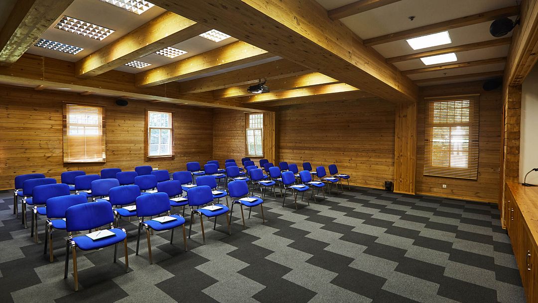 Площадь зала составляет 20 м2, для кофе-брейка и отдыха у участников конференции есть отдельная комната отдыха с собственным санузлом площадью 20 м2.
