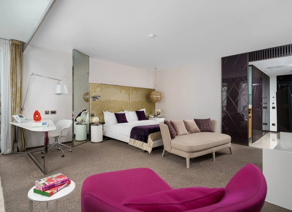 В отеле, спроектированном знаменитым итальянским дизайнером Антонио Читтерио, гостей ожидает вид на Исаакиевский собор, уникальная концепция сервиса Just Say SO, философия умиротворения в Urban Wellness Zone, а также вечеринки SO Parties в лобби-баре MIXO и на панорамной летней террасе HI-SO.