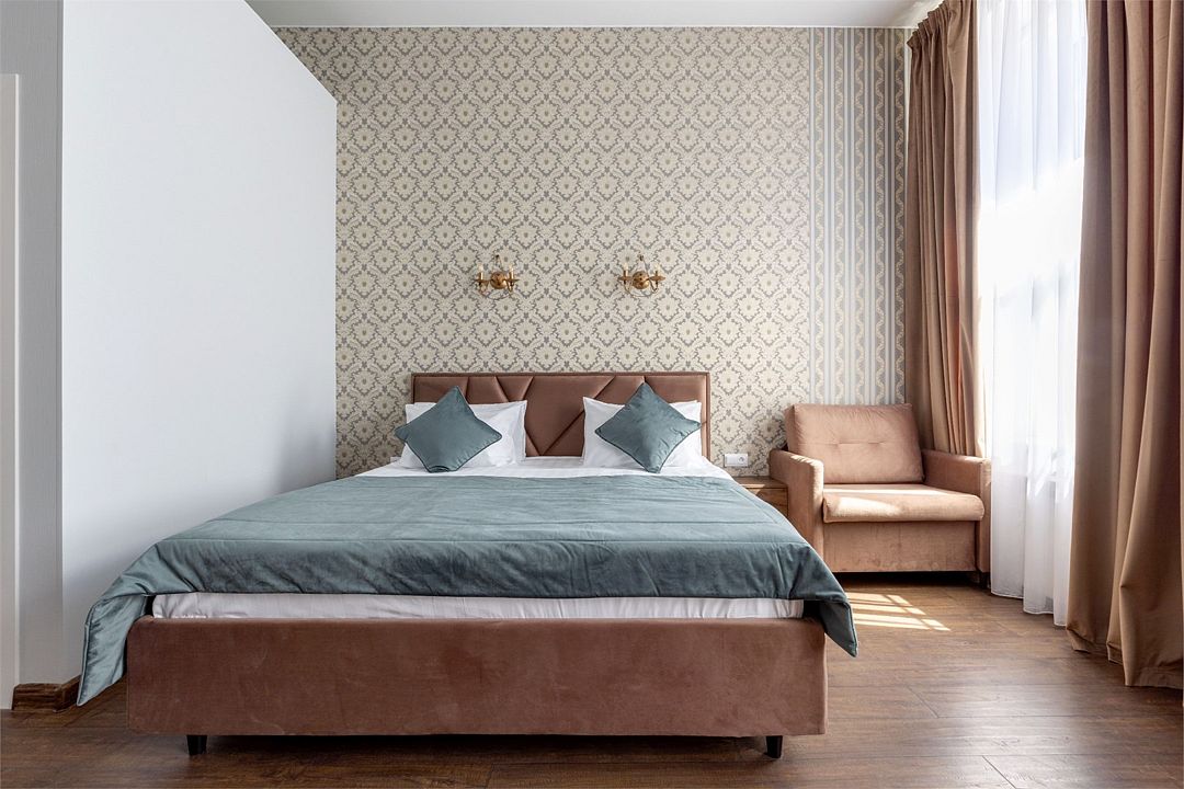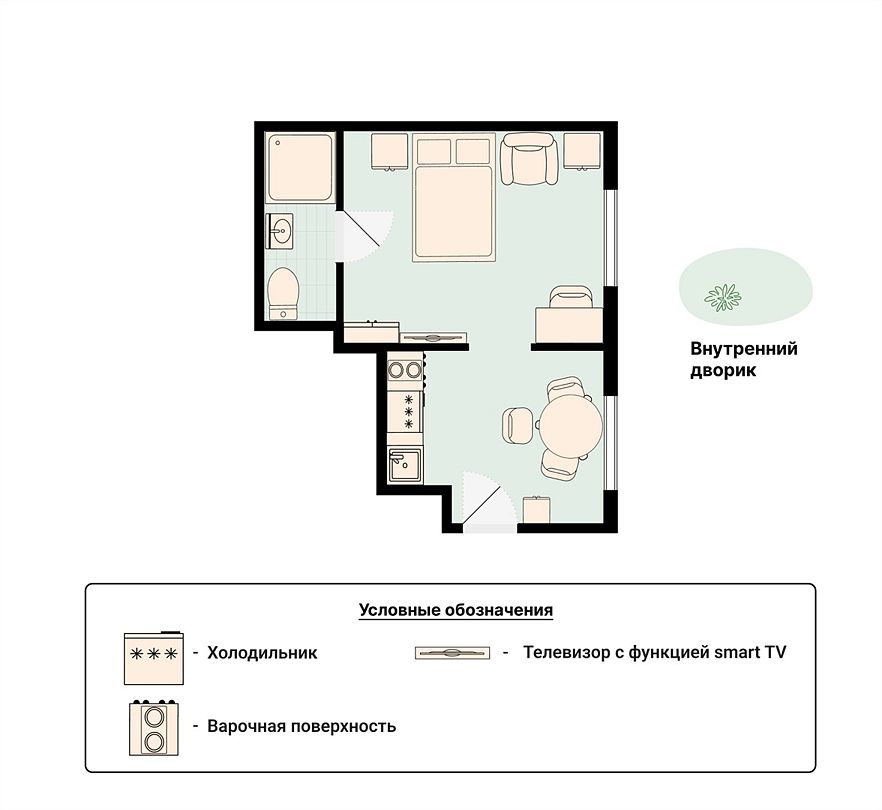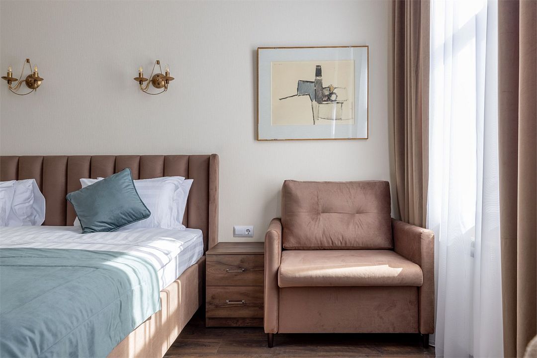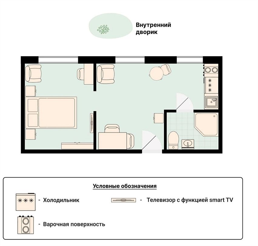 Wi-Fi, интернет, фен, электронные замки, микроволновая печь, утюг, душевая кабина, санузел, банные принадлежности, тапочки, кровать «King size», гладильная доска, тумбы, стулья, шкаф для одежды, вешалки, обеденный стол, зеркало, звуконепроницаемые стены и окна, набор посуды, сейф, чайник, раковина, обеденная зона, отопление, душ, вид во двор, высокие потолки, кухонная утварь, тумба, туалетные средства, туалет, раскладное кресло, телевизор с плоским экраном, мини-холодильник, кухонный уголок, телевизор со Smart TV, номер для некурящих, рабочий стол, онлайн-регистрация до заезда, кресло-кровать, чайная станция, затемняющая штора, можно с питомцамиВ гостиничном номере